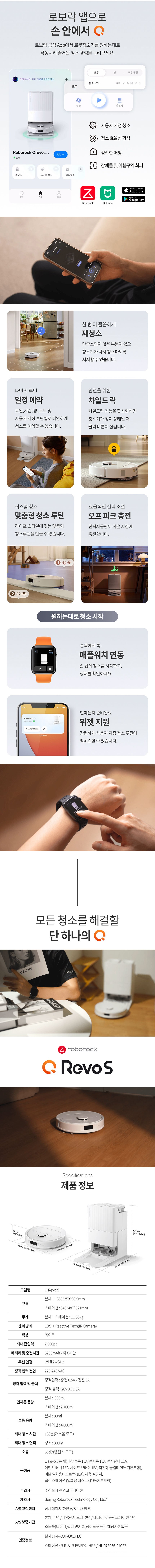 | 품명 및 모델명 | 로보락 Qrevo S 1개 / QX1PEC+EWFD24HRR | KC 인증정보 | 본품: R-R-BJR-QX1PEC / 스테이션: HU073056-24022, R-R-BJR-EWFD24HRR |