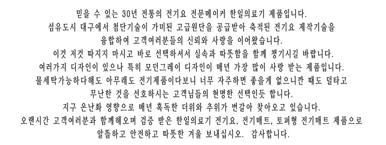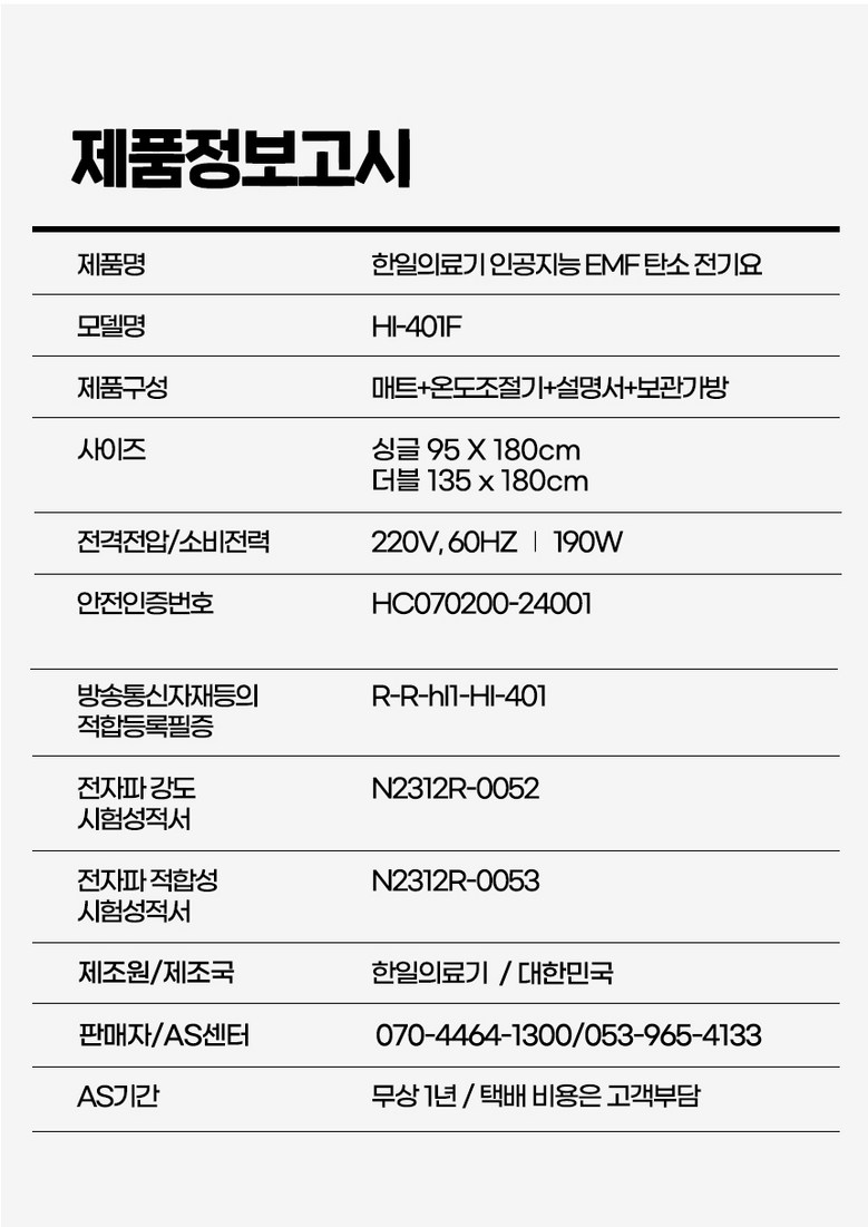 | 품명 및 모델명 | 탄소전기매트 | KC 인증정보 | 상품 상세페이지 참조 |