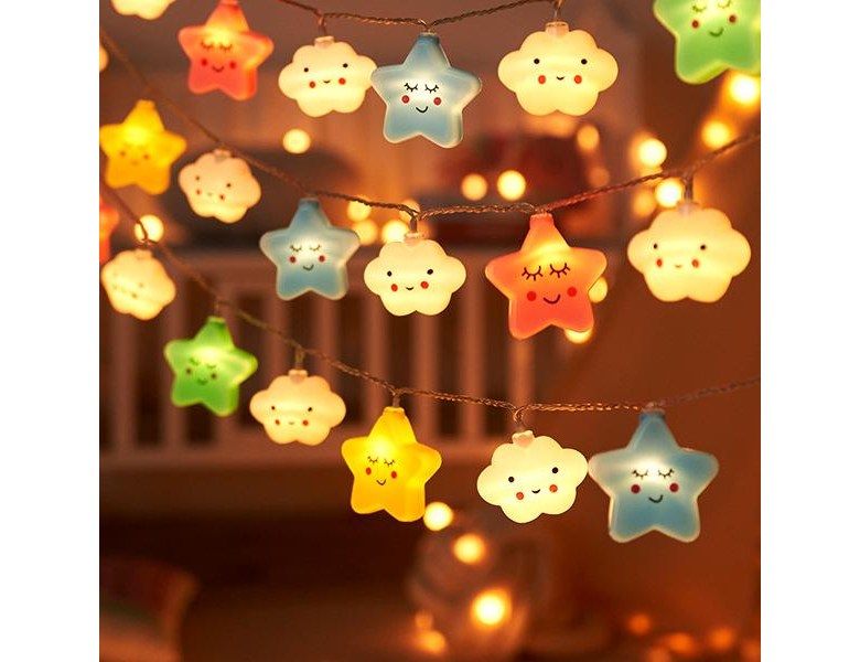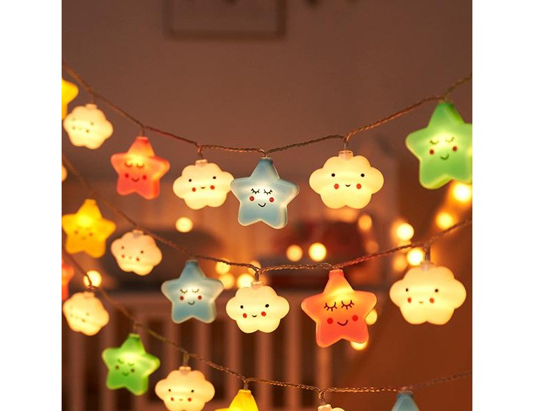 투니스 별 + 구름 모양 줄조명 배터리 버전 20구 3m, 컬러풀, 1개