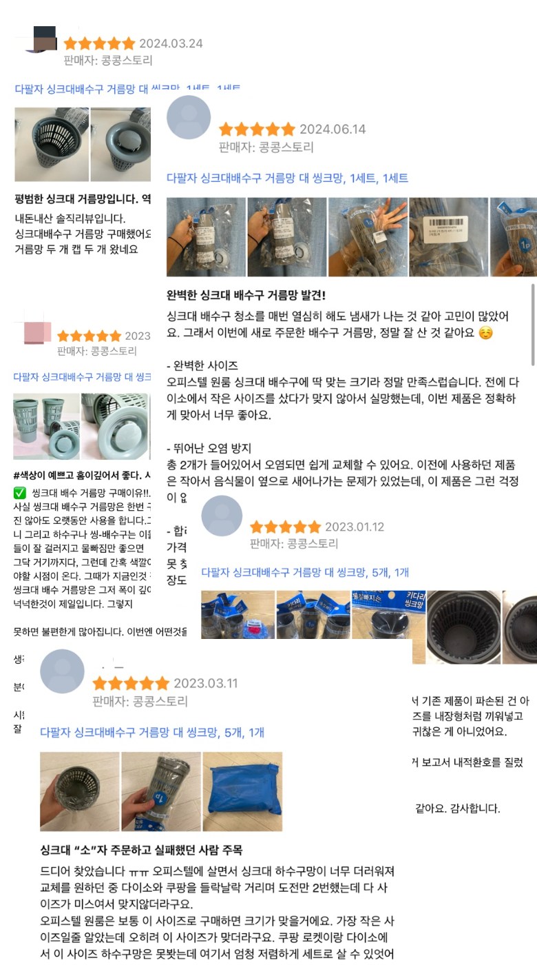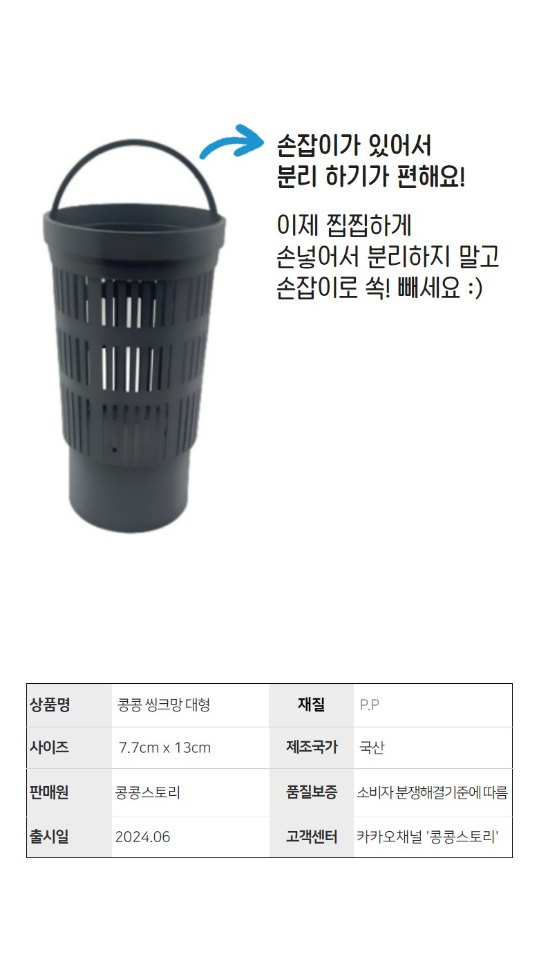 | 품명 및 모델명 | 물잘빠지는 싱크대 거름망 | 재질 | p.p |