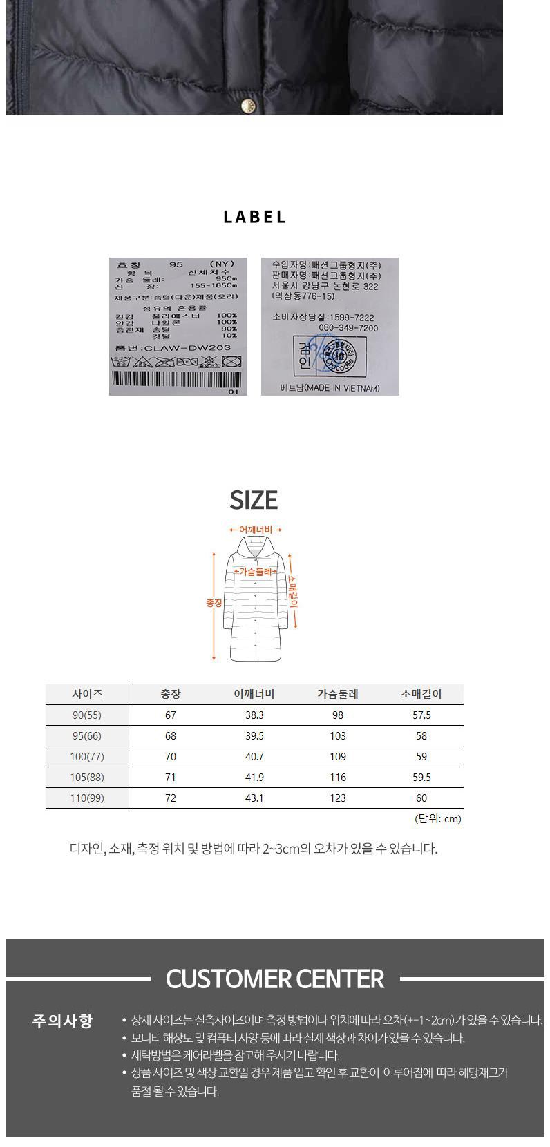 | 제조국 | 컨텐츠 참조 | 세탁방법 및 취급시 주의사항 | 화기 주의 |