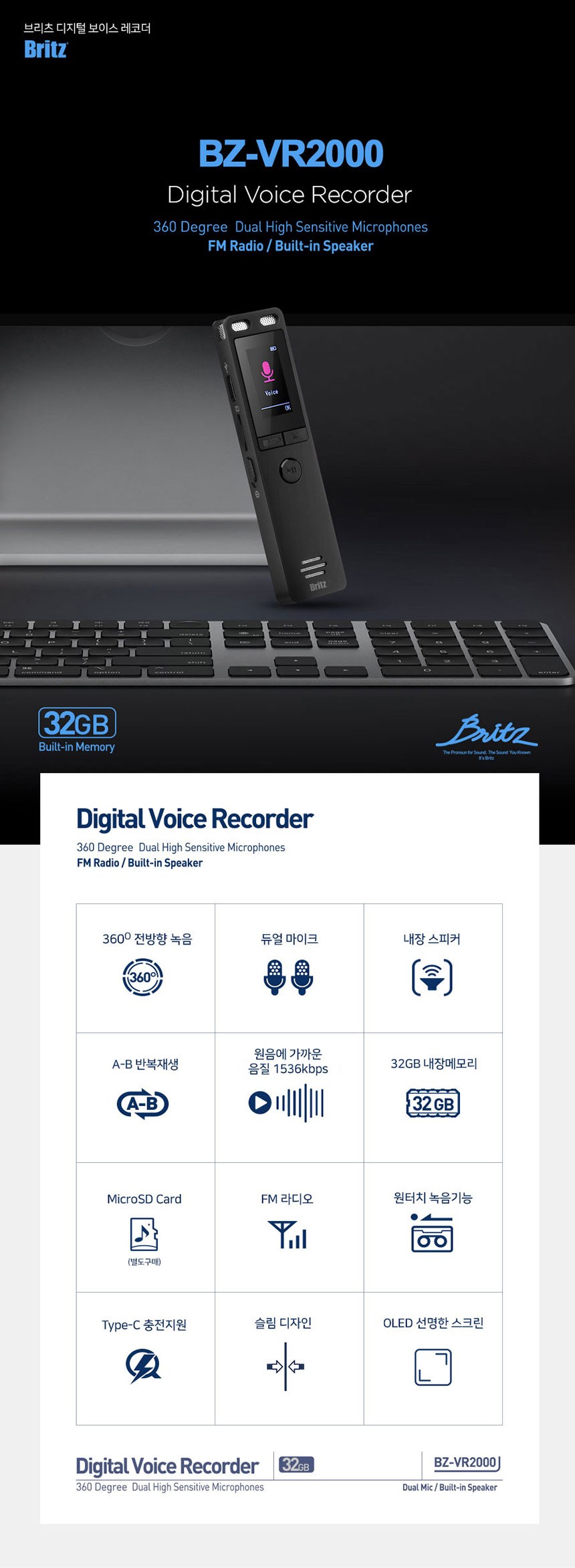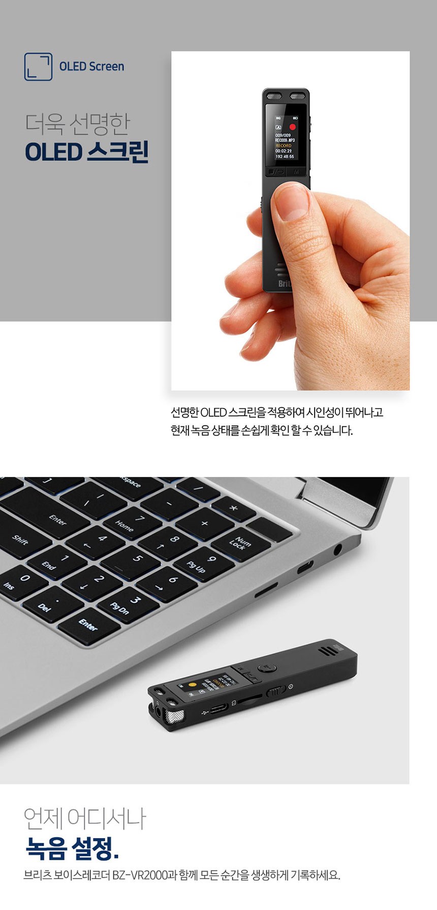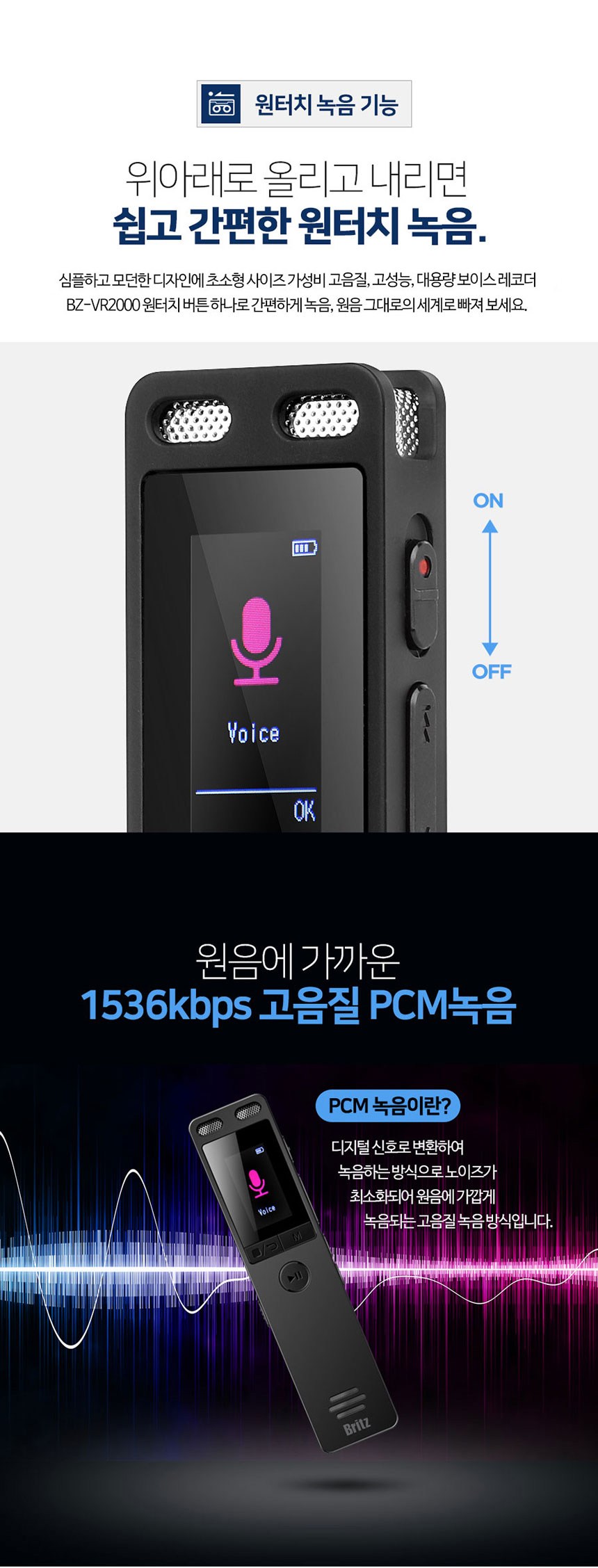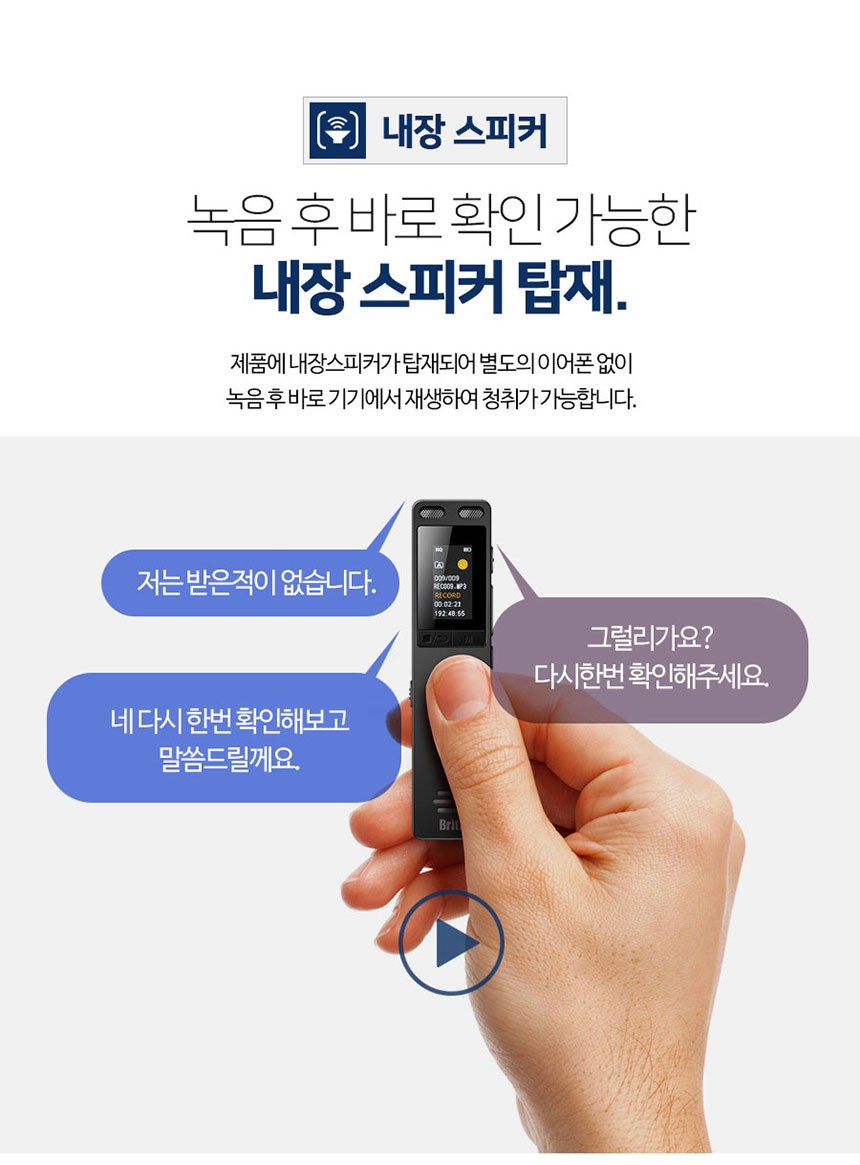 | 품명 및 모델명 | 보이스레코더 / BZ-VR2000 | KC 인증정보 | 본품: R-R-BZI-BZ-VR2000 전지: YU101508-21002E |