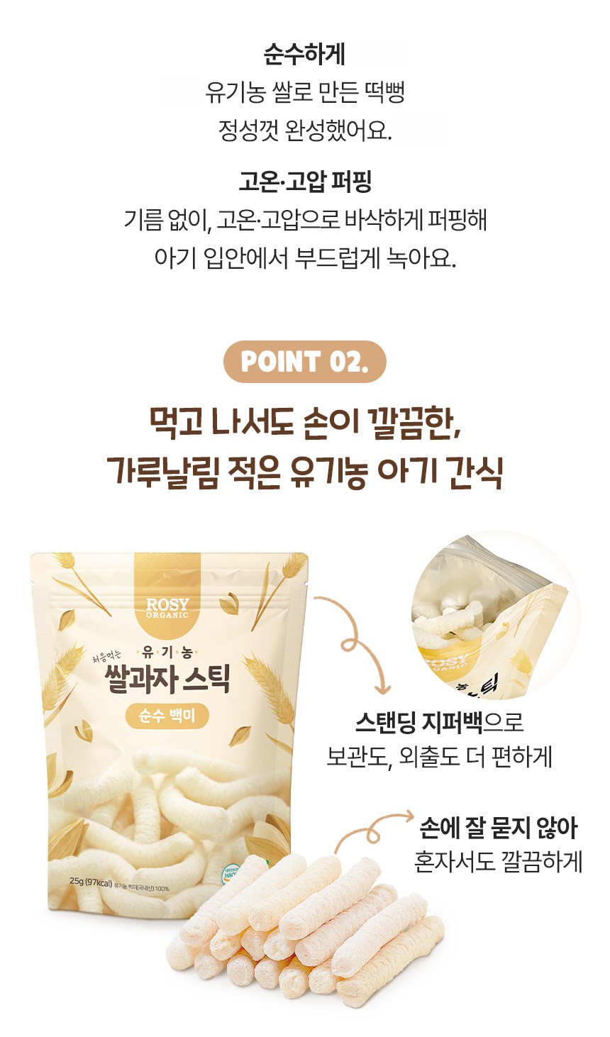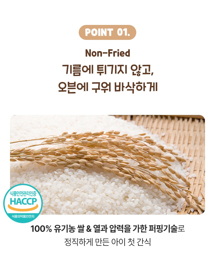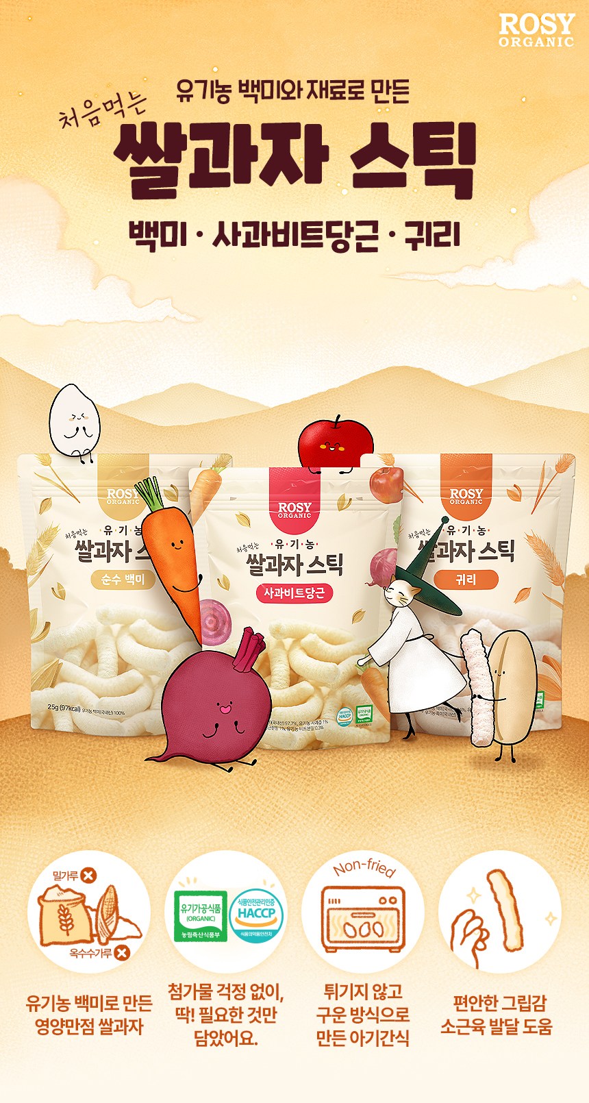 | 제품명 | 유기농 쌀과자 스틱 사과비트당근 + 유기농 쌀과자 스틱 귀리 + 유기농 쌀과자 스틱 순수 백미 | 식품의 유형 | 컨텐츠 참조 |