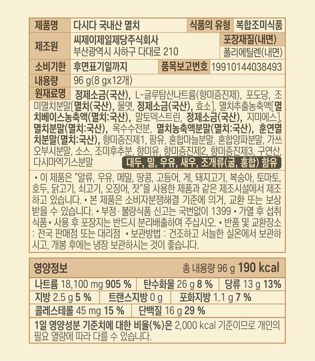 | 포장단위별 내용물의 용량(중량), 수량 | 96g x 6개 | 원재료명 및 함량 | 컨텐츠 참조 |