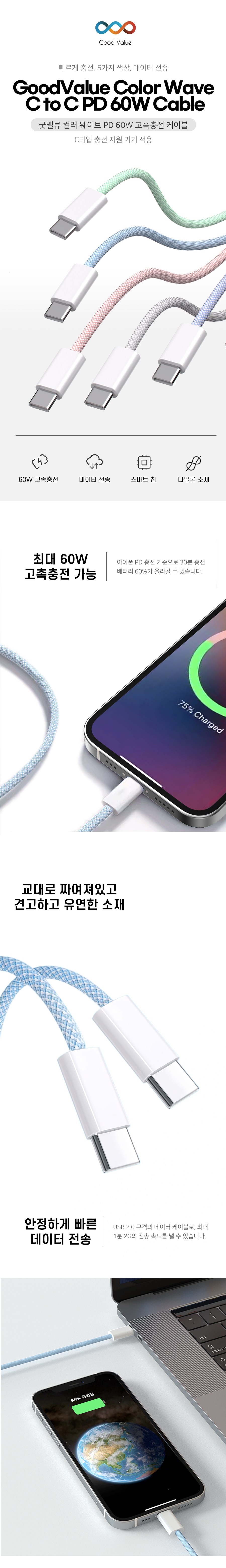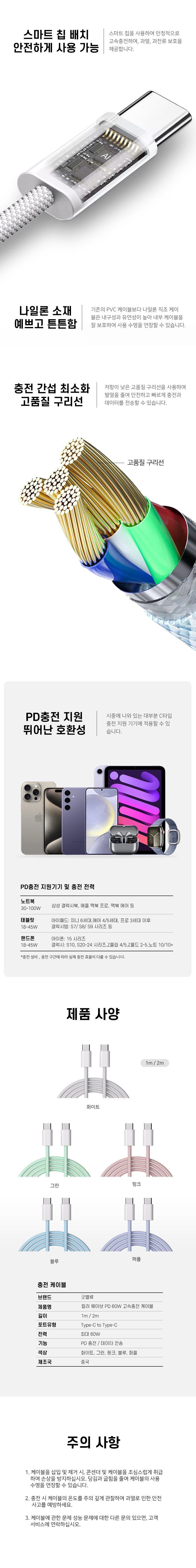 | 품명 및 모델명 | 굿밸류 컬러 웨이브 PD 60W 고속충전케이블 그린 2m | 인증/허가 사항 | 해당없음 |