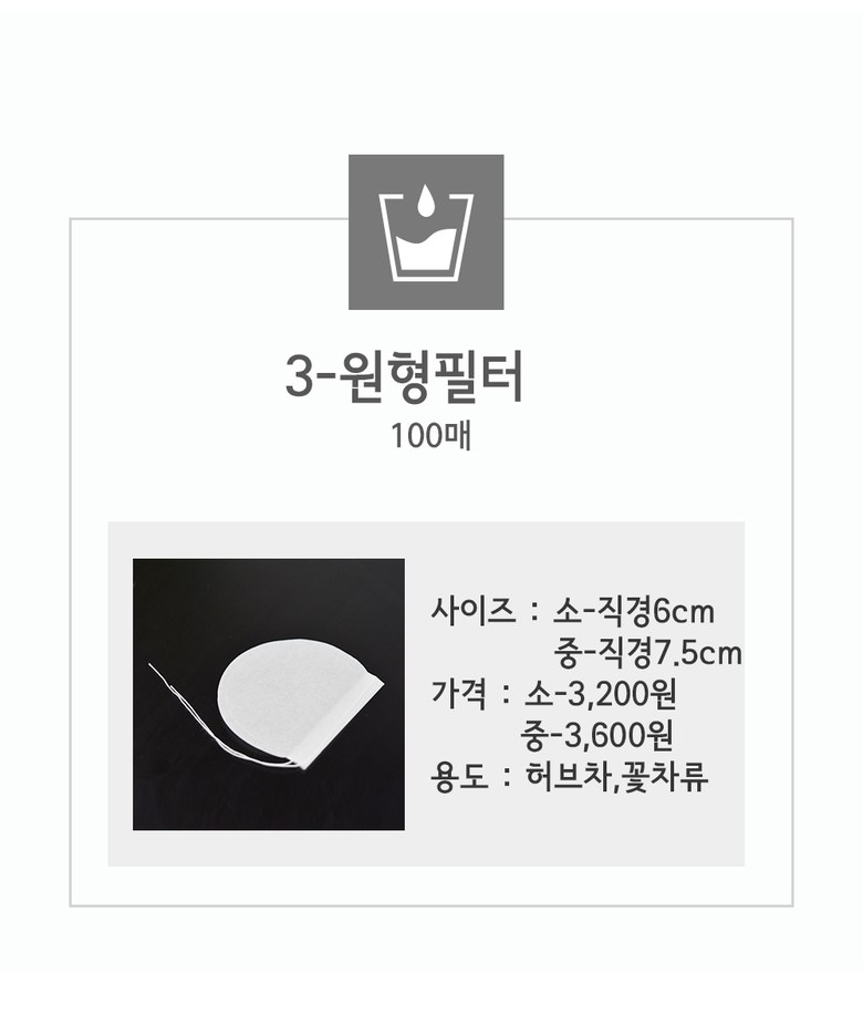 다경공티백 천연펄프공티백 실링기필요없는 공티백, 3번원형필터7.5c..., 100개