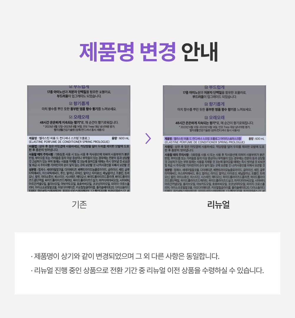 ※ 리뉴얼 진행중인 상품으로 제품명, 패키지 디자인이 상이한 동일 제품을 수령하실 수 있습니다.