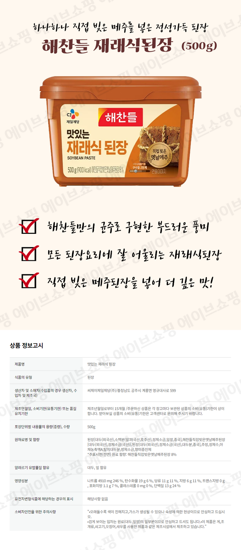 - 된장종류: 재래된장