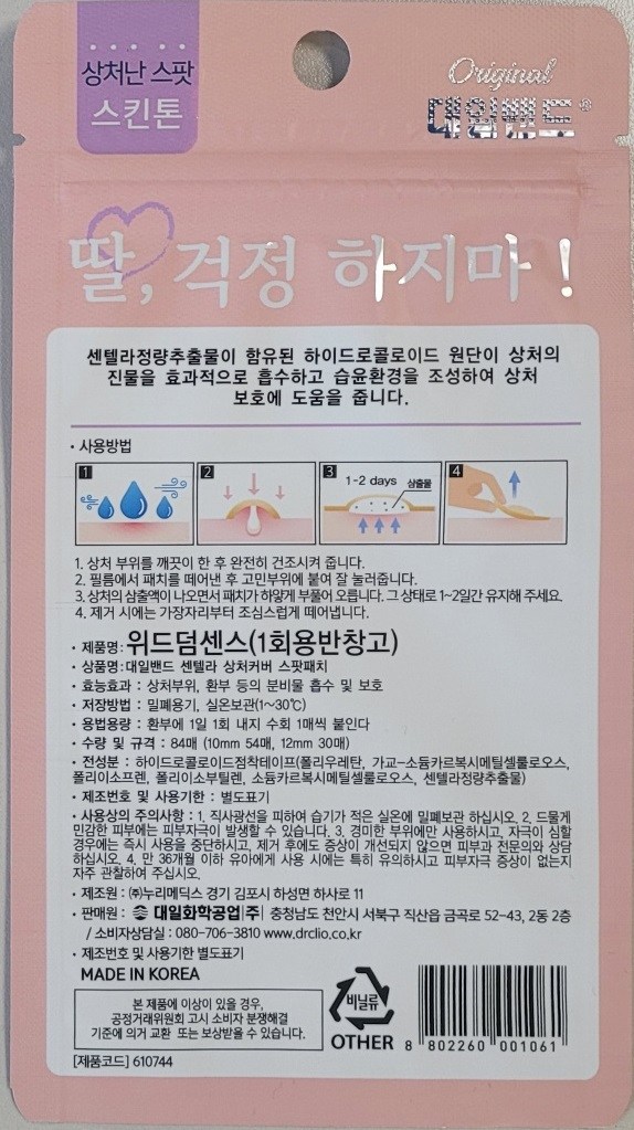 | 품명 및 모델명 | 위드덤센스 | 인증/허가 사항 | 의약외품 |