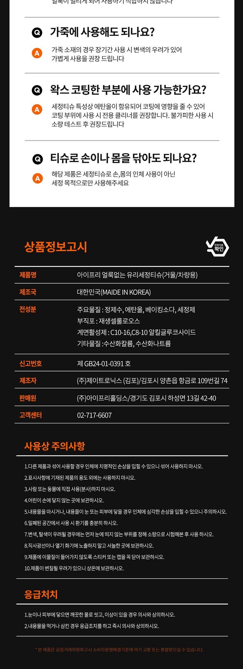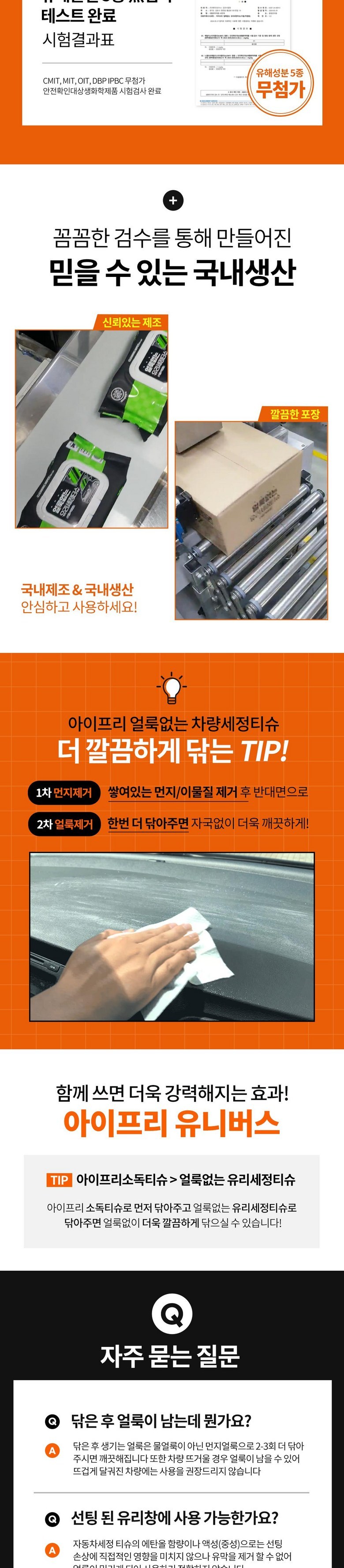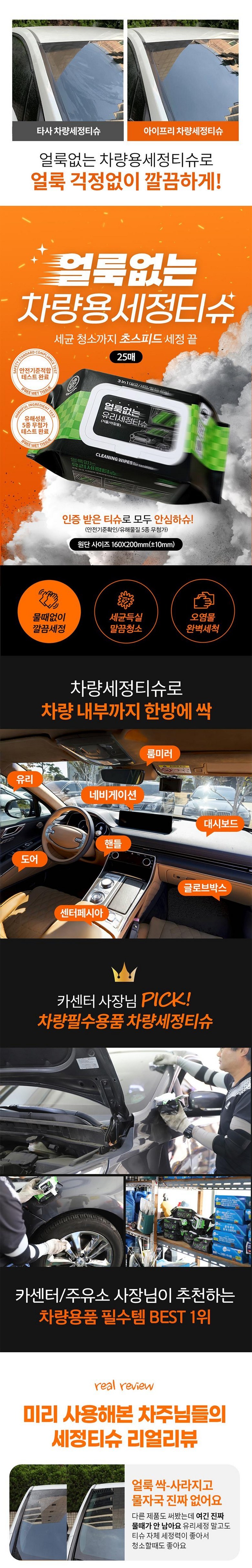 | 품명 및 모델명 | 아이프리 얼룩없는 차량용 세정티슈 | 인증/허가 사항 | 상품 상세페이지 참조 |