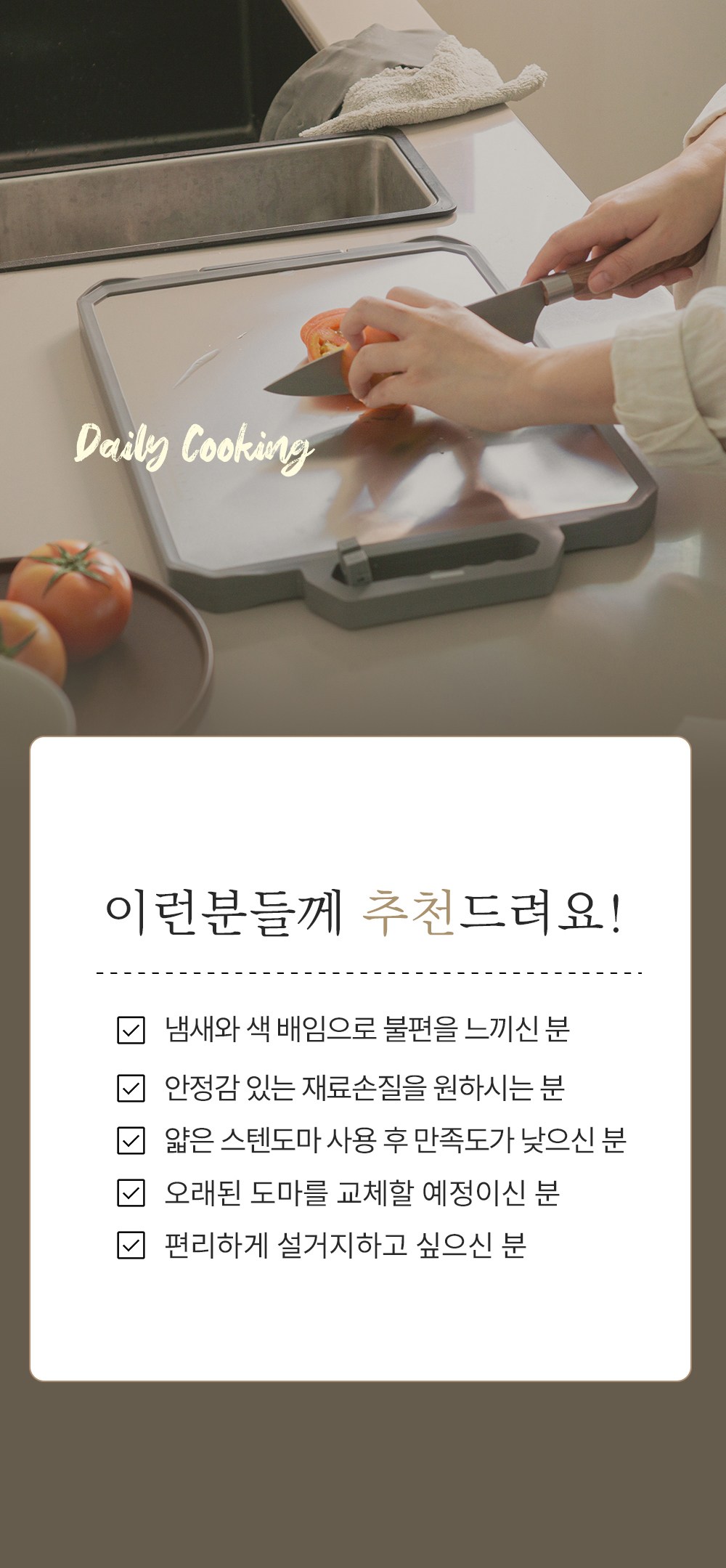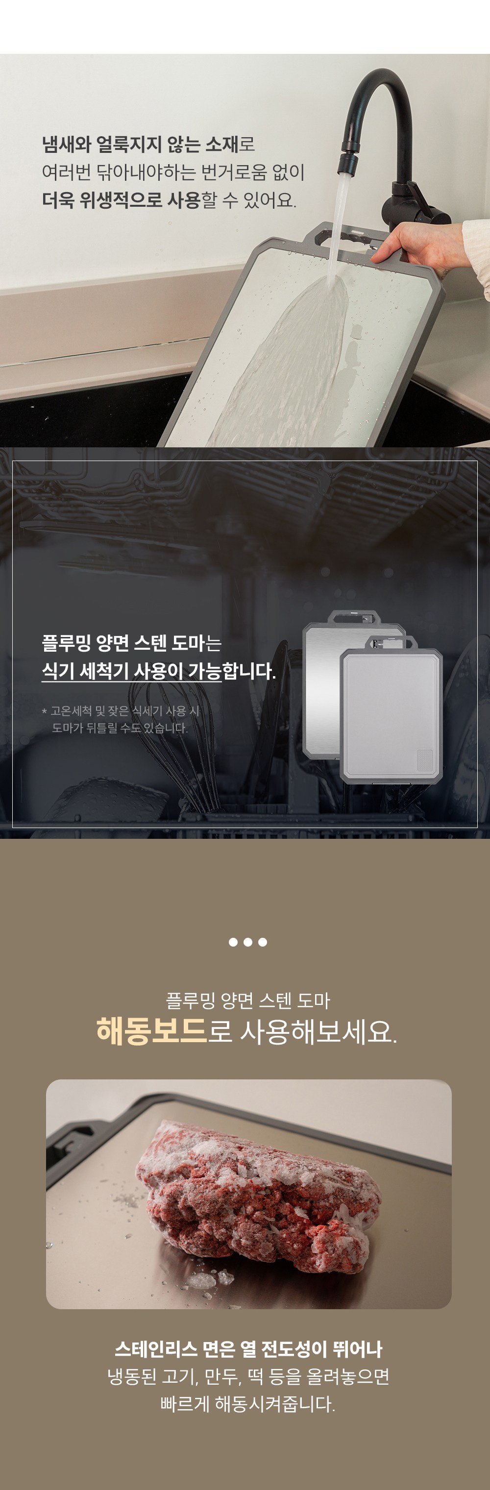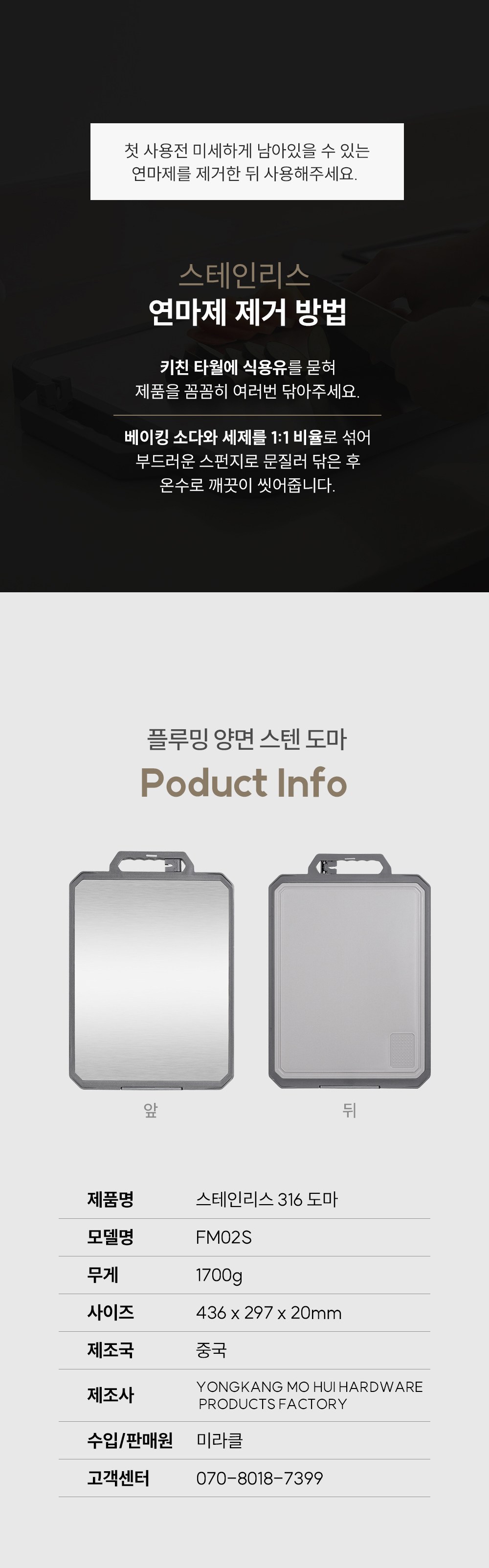 | 품명 및 모델명 | 플루밍 316 양면 항균 스텐 도마 | 재질 | 스테인리스 + PP |
