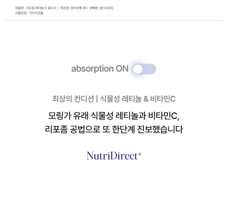 | 식품의 유형 | 기타가공품 | 생산자/소재지(수입품의 경우 생산자, 수입자 및 제조국) | 큐어라벨(주) / 경기도 용인시 처인구 백암면 죽양대 로 652-19, A동 1층, B동 1층, C동 1~3층 |