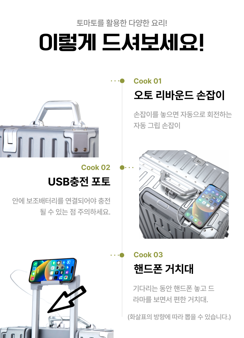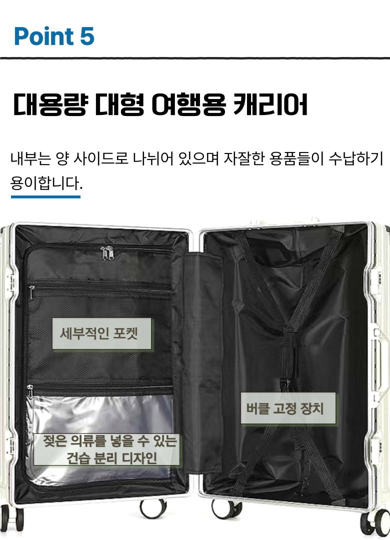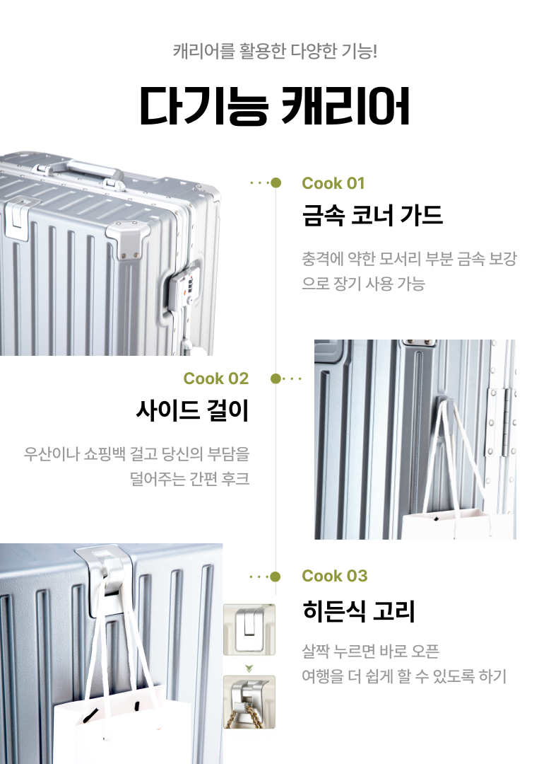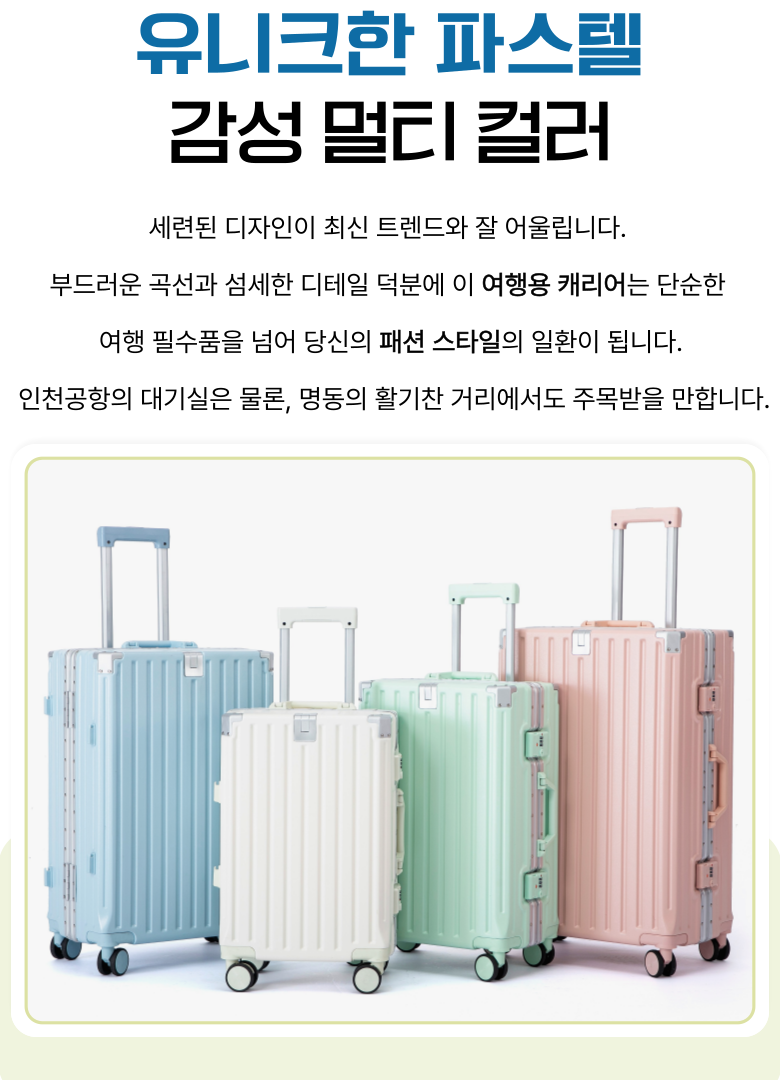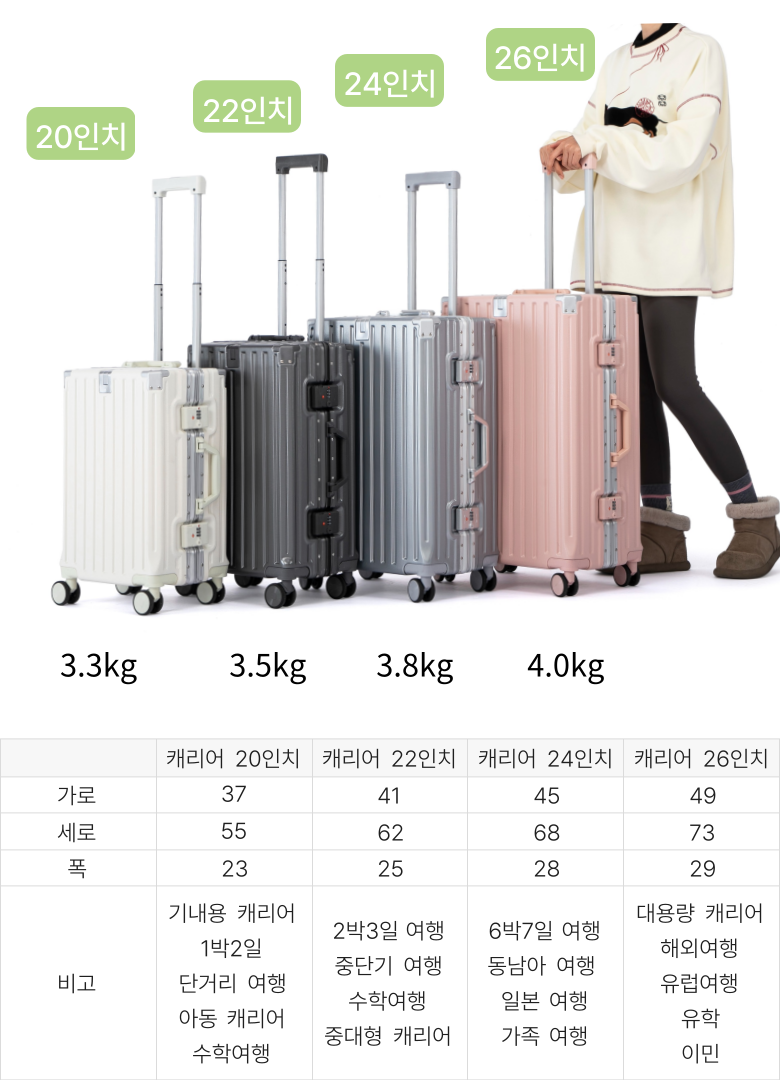 | 색상 | 화이트,그린,핑크,블랙,블루,그레이,실버 | 크기 | 20인치,22인치,24인치,26인치 |