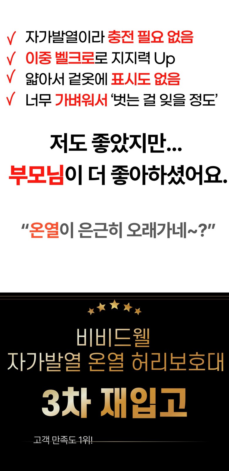 | 품명 및 모델명 | 비비드웰 자가발열 온열복대 | 인증/허가 사항 | 상품 상세페이지 참조 |