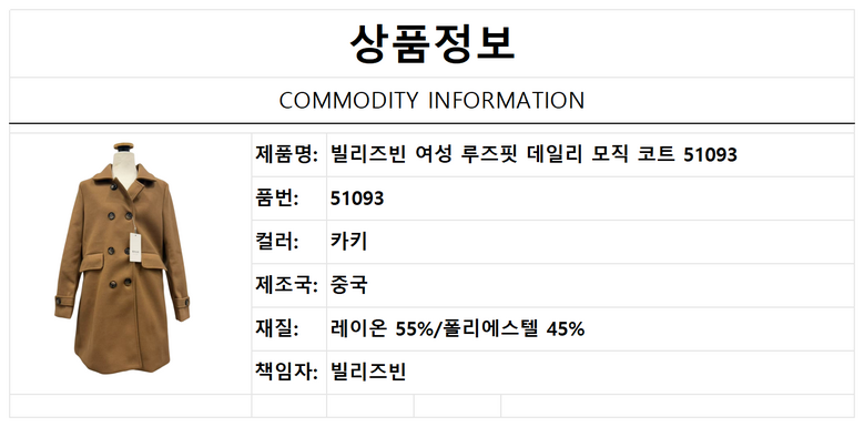 | 치수 | 상품 상세페이지 참조 | 제조자(수입자) | 빌리즈빈 |