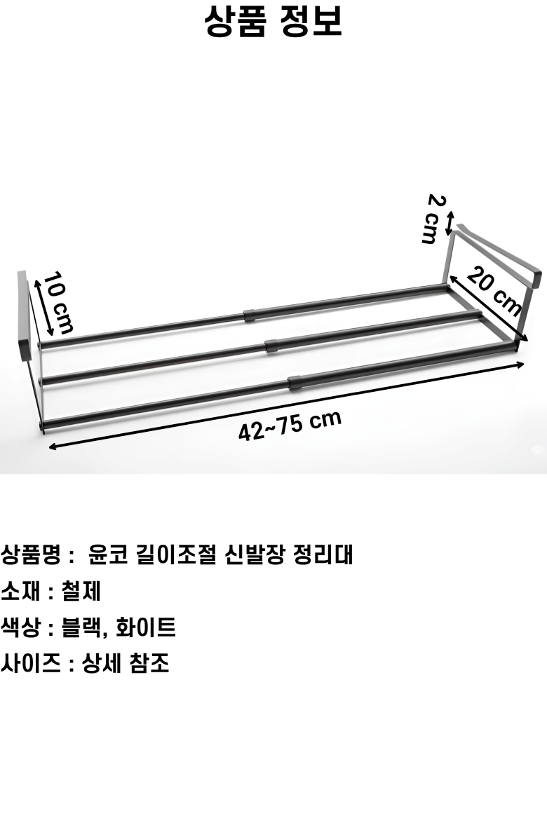 | 품명 및 모델명 | 윤코 길이조절 신발장 정리대 슈즈랙 블랙 | 인증/허가 사항 | 해당없음(14세이상) |