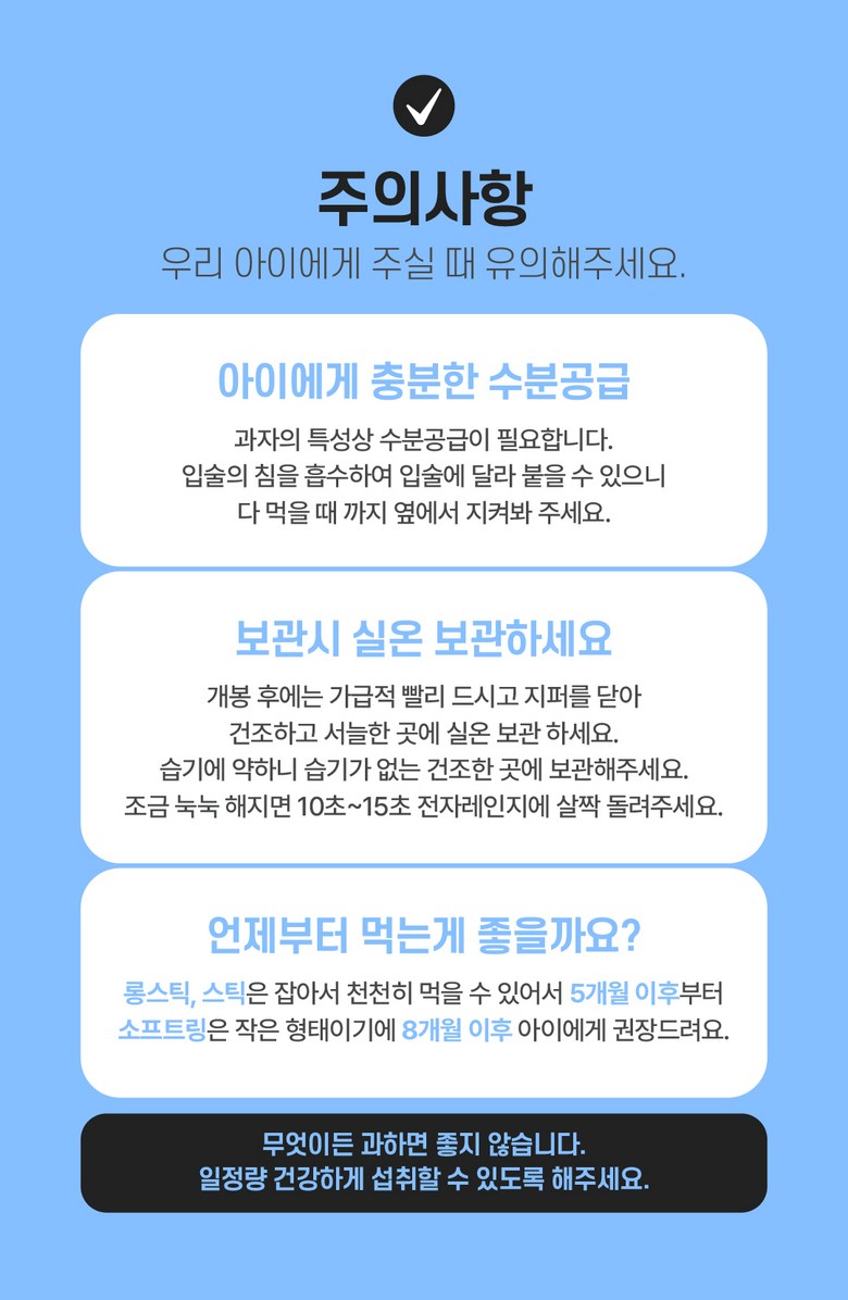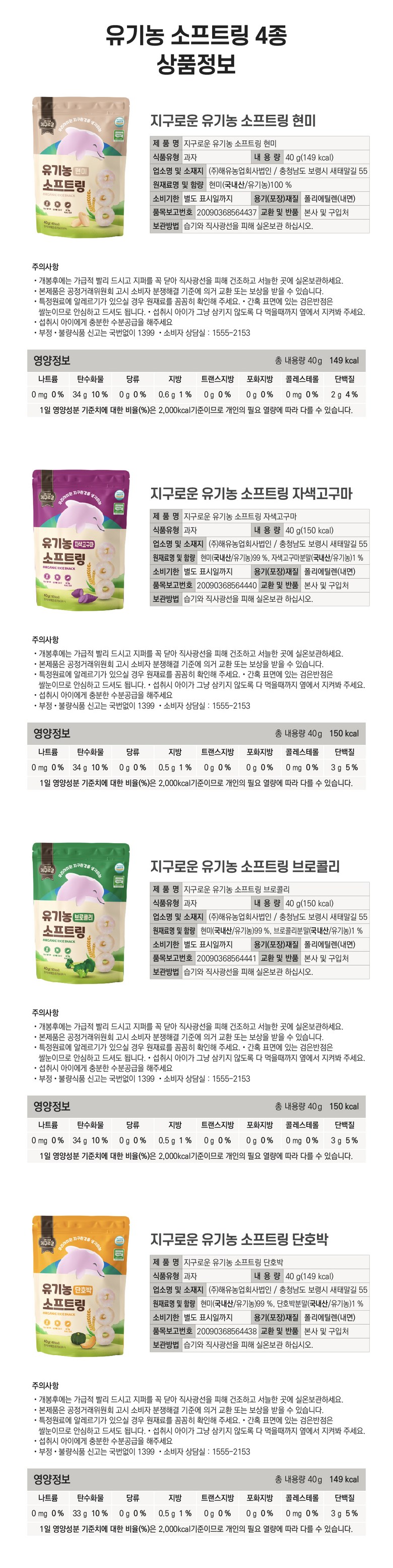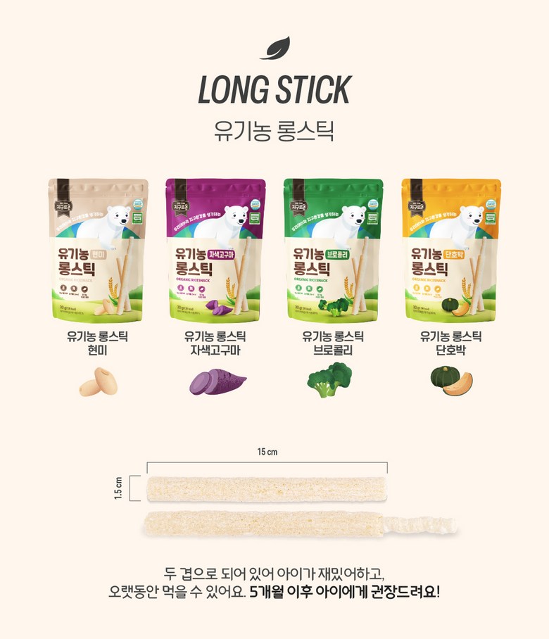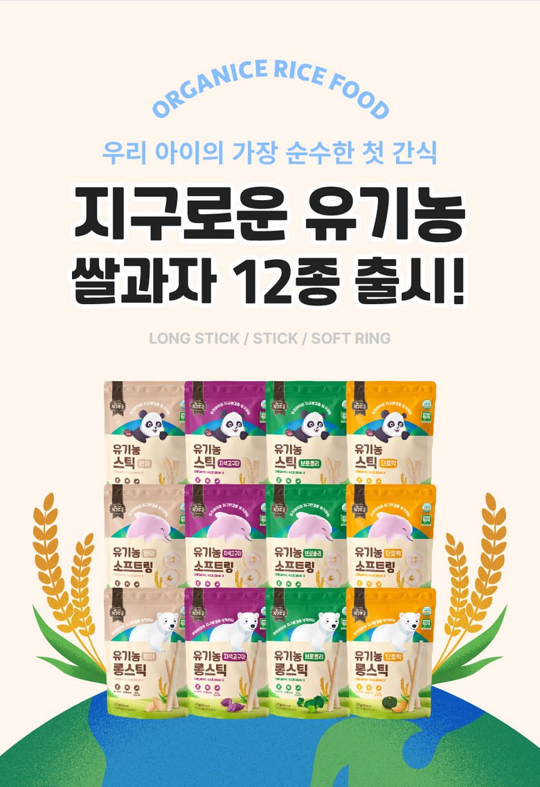 | 제품명 | 지구로운 유기농 아기 과자 롱스틱 4종, 스틱 4종, 소프트링 4종 (총12종) | 식품의 유형 | 과자류 |