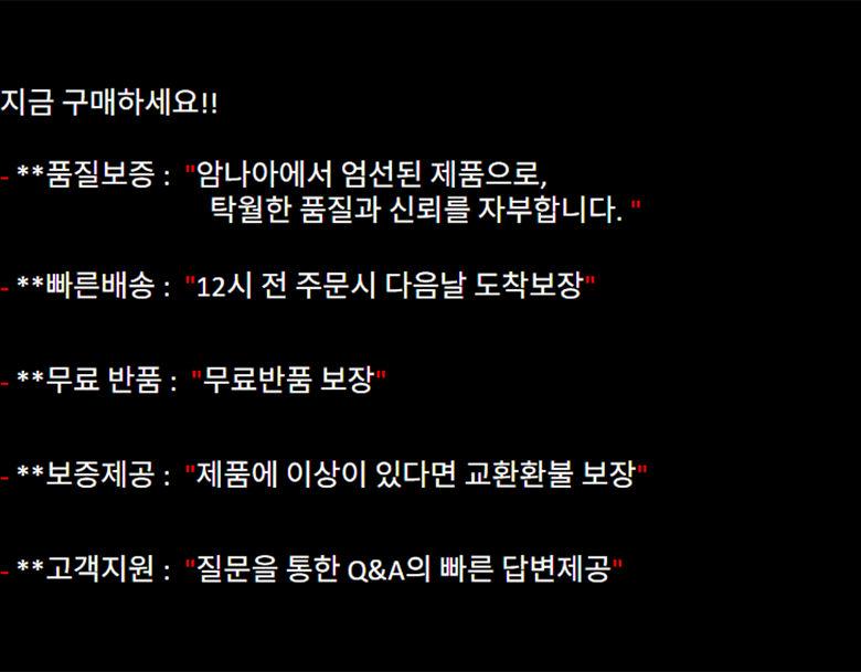 - ㆍ모니터 해상도의 차이로 인해 색상이나 이미지가 실제와 달라, 고객이 단순 변심으로 교환/반품을 무료로 요청하는 경우