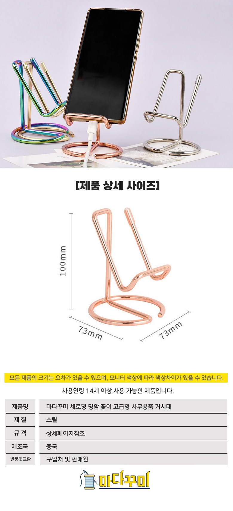 | 품명 및 모델명 | 마다꾸미 세로형 명함 꽂이 고급형 사무용품 거치대 07. 로즈골드 5개 | 인증/허가 사항 | 해당없음(14세이상) |