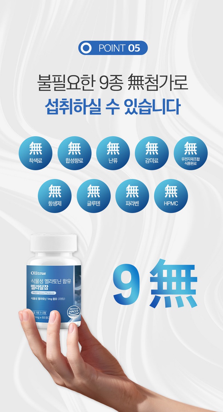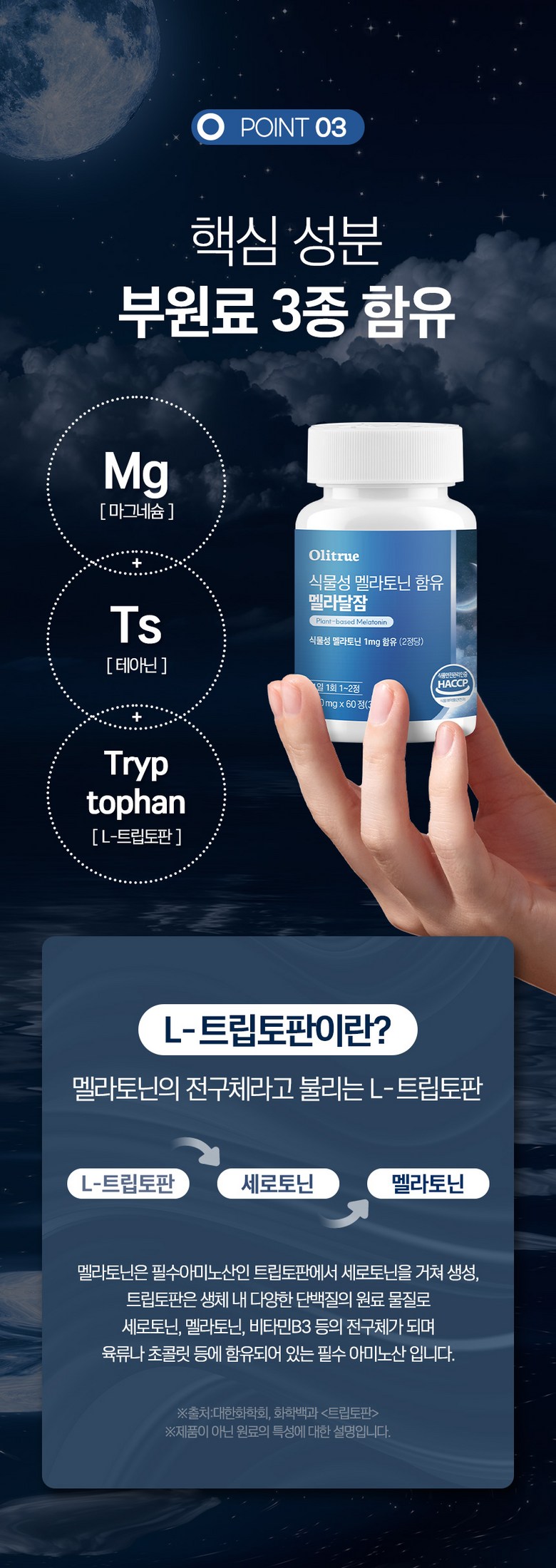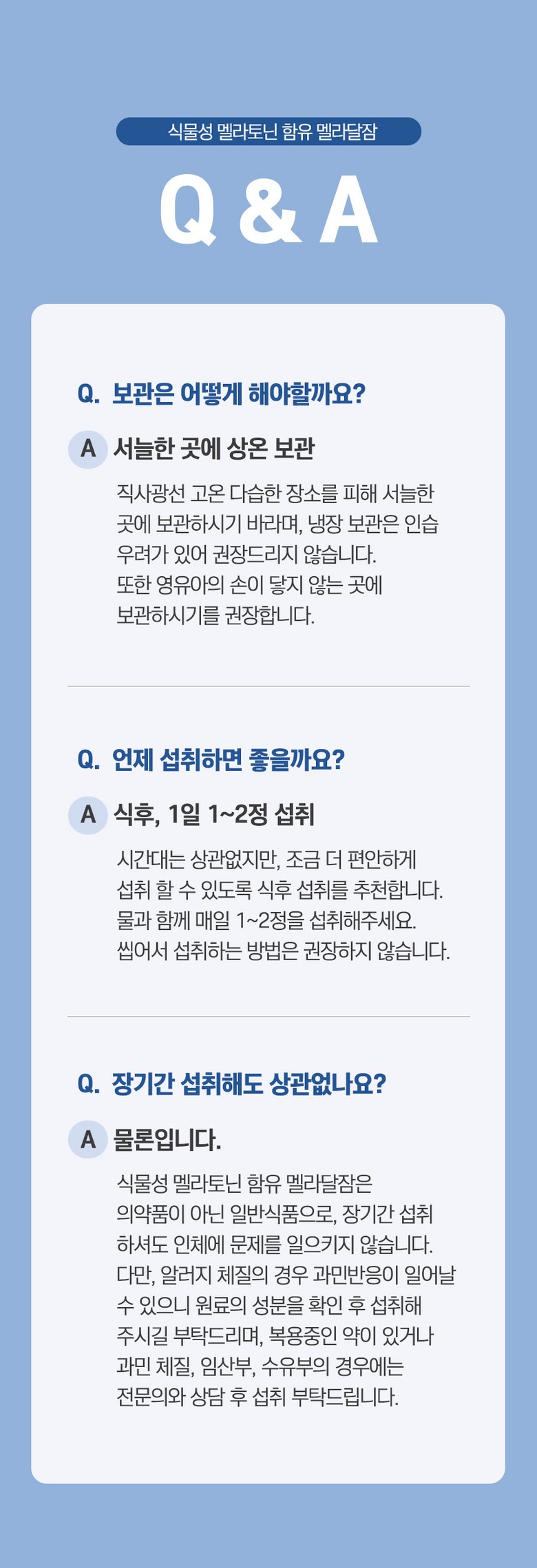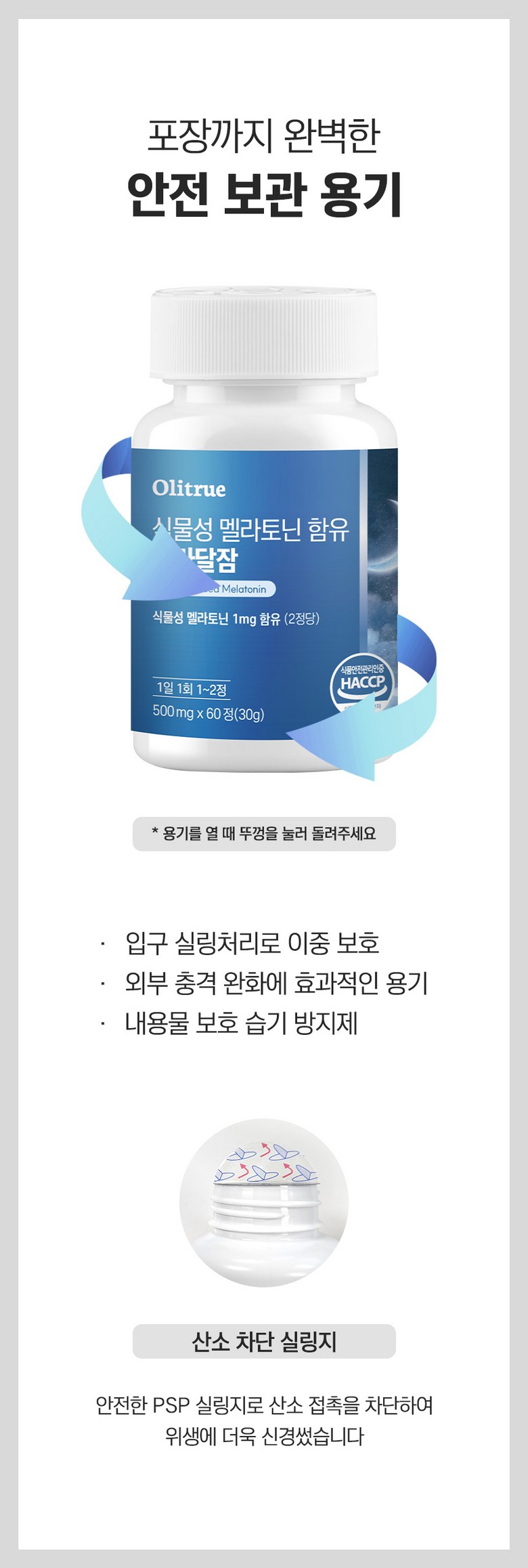 | 제품명 | 올리트루 식물성 멜라토닌 함유 멜라달잠 | 제조업소의 명칭과 소재지 | 올리트루 협력사 |