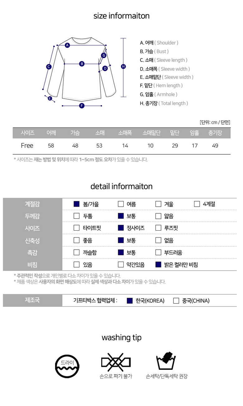 - ㆍ교환/반품에 관한 일반적인 사항은 판매자가 제시사항보다 관계법령이 우선합니다.