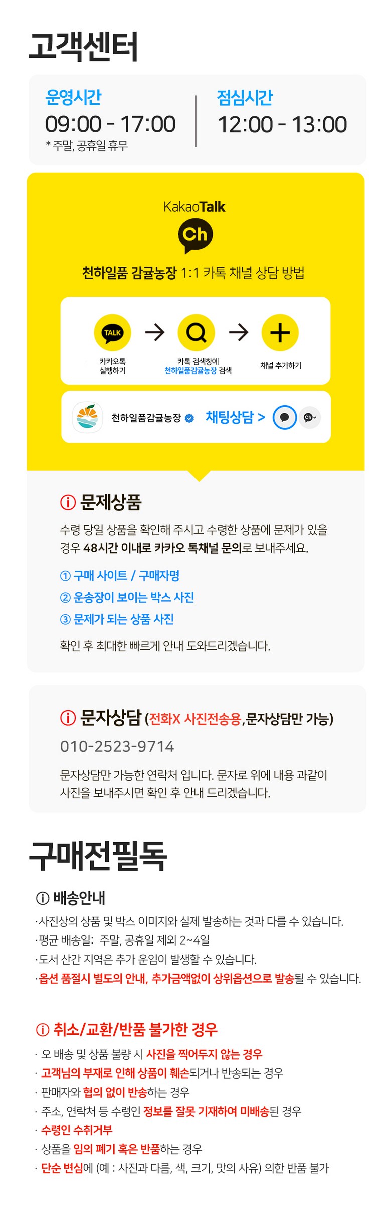 - ㆍ교환/반품에 관한 일반적인 사항은 판매자가 제시사항보다 관계법령이 우선합니다.