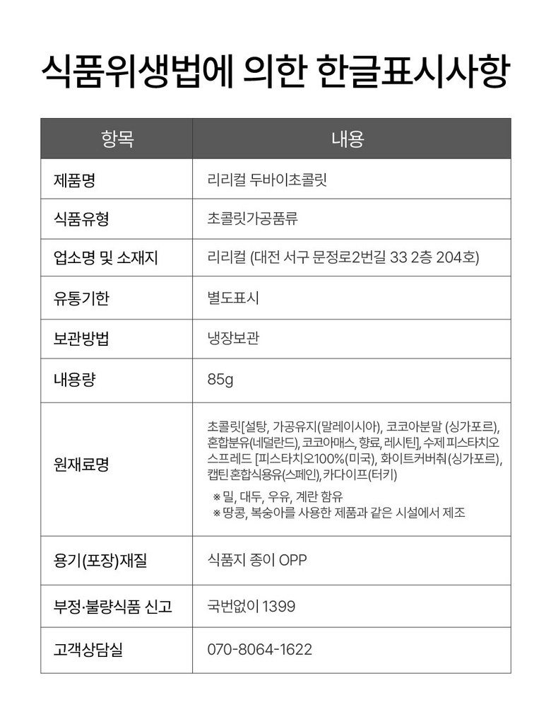 | 제품명 | 상품 상세페이지 참조 | 식품의 유형 | 상품 상세페이지 참조 |
