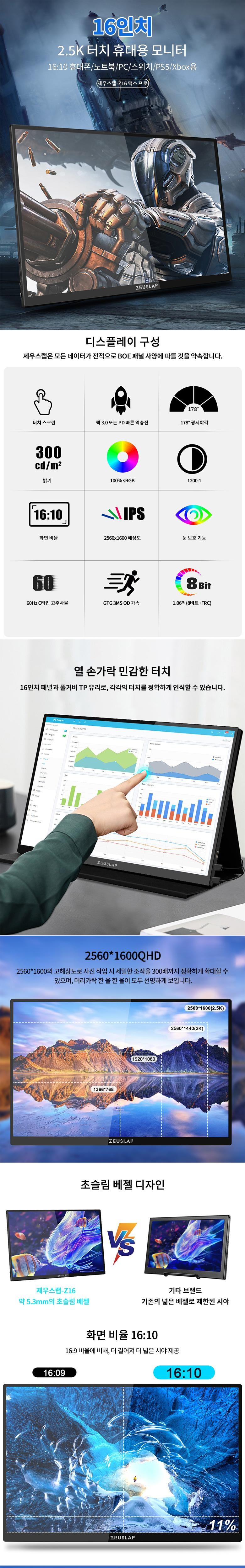 제우스랩 Z16 맥스 프로 16인치 2.5K 터치 포터블 모니터