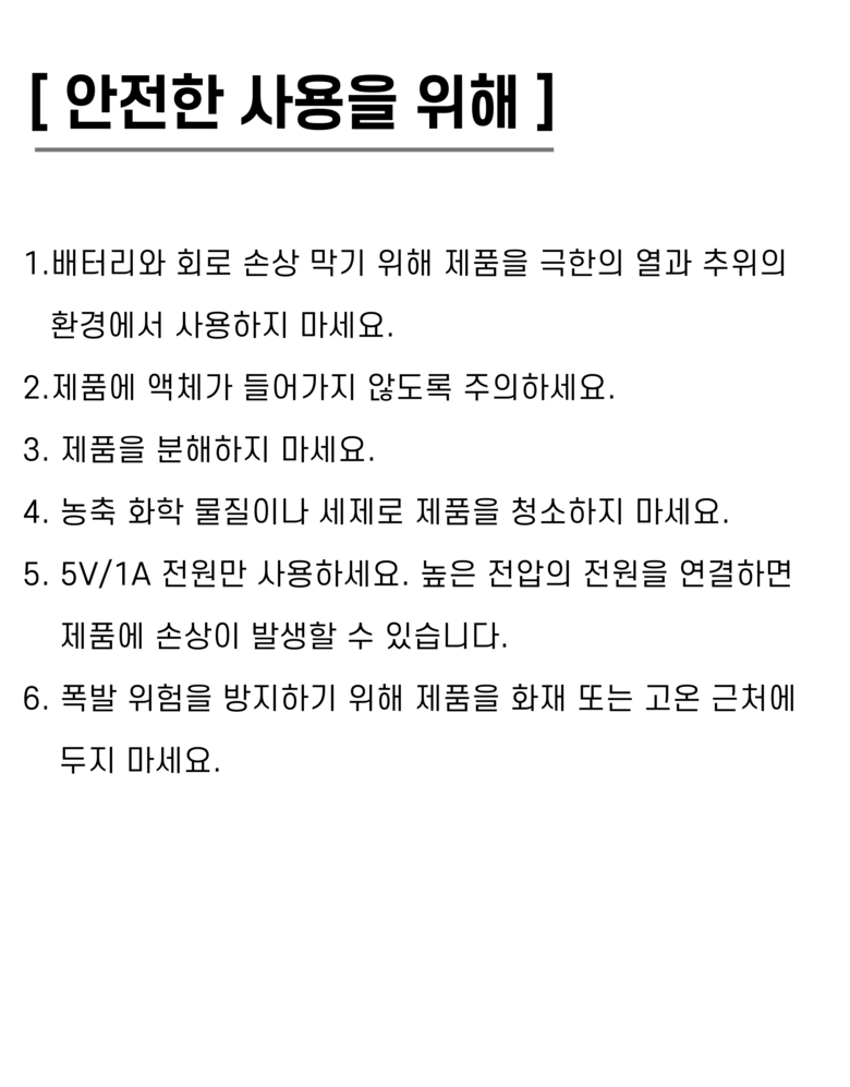 | 정격전압, 소비전력 | DC=5V1A | 출시년월 | 2024 |