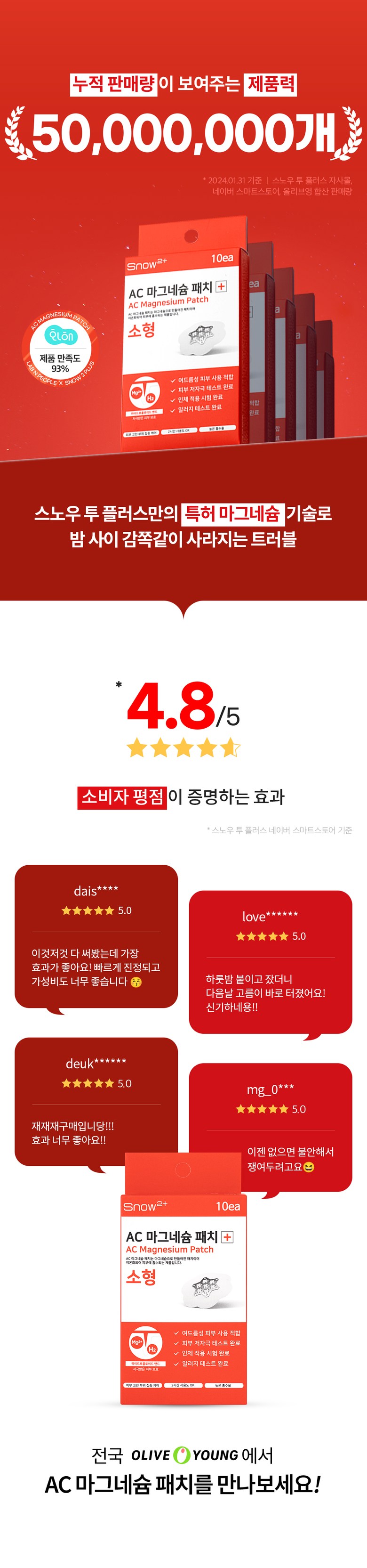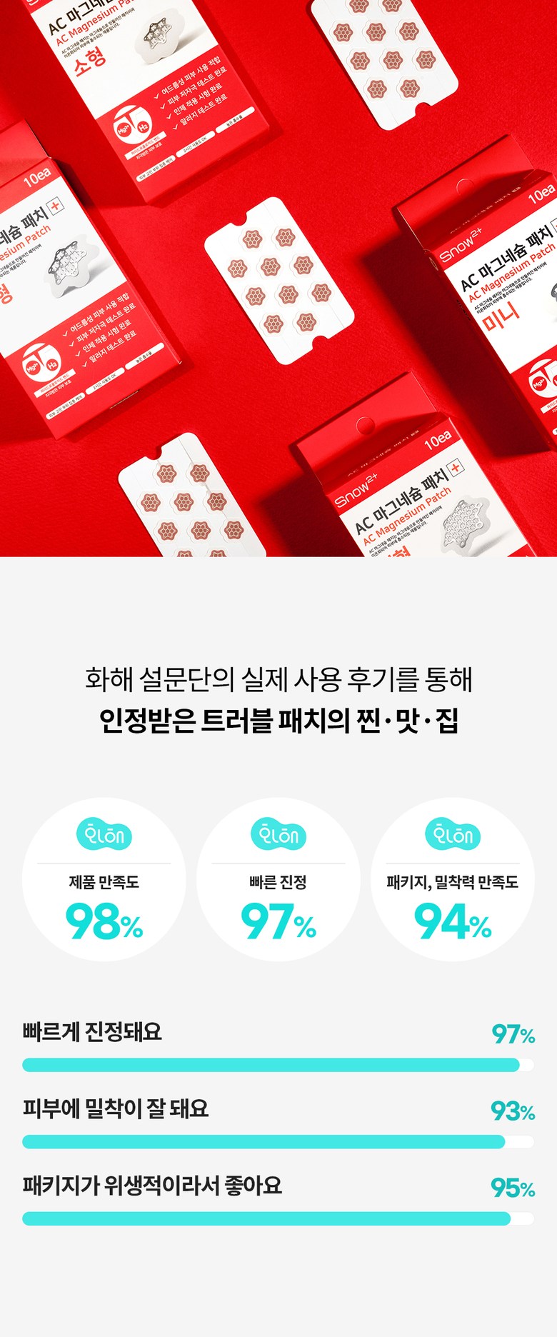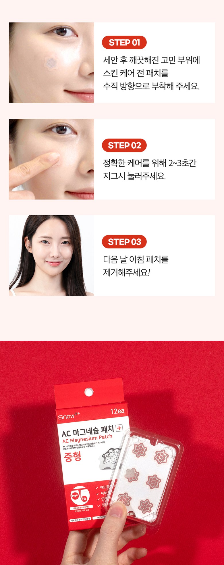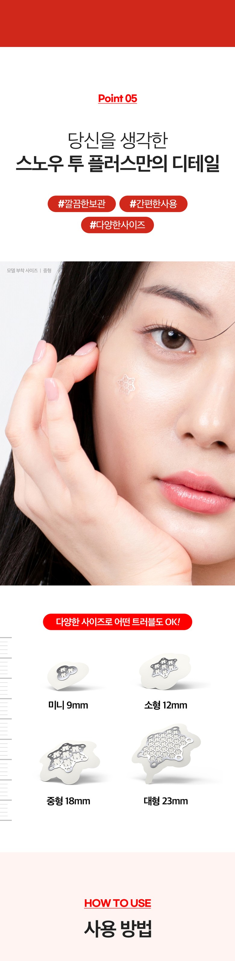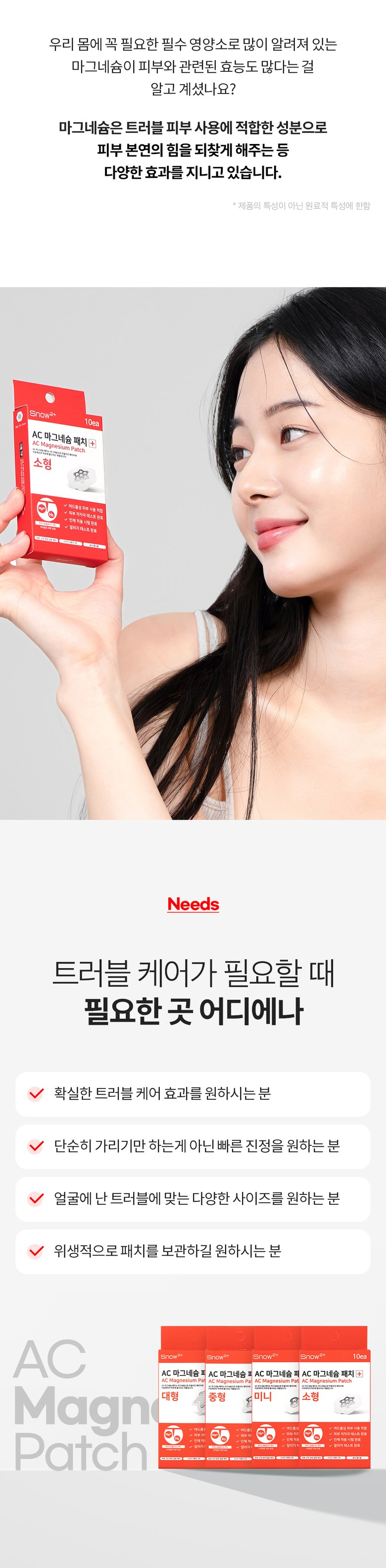 | 용량(중량) | 미니 : 15매입 / 소형 : 10매입 / 중형 : 12매입 / 대형 : 6매입 | 제품 주요 사양 | 모든 피부용 |