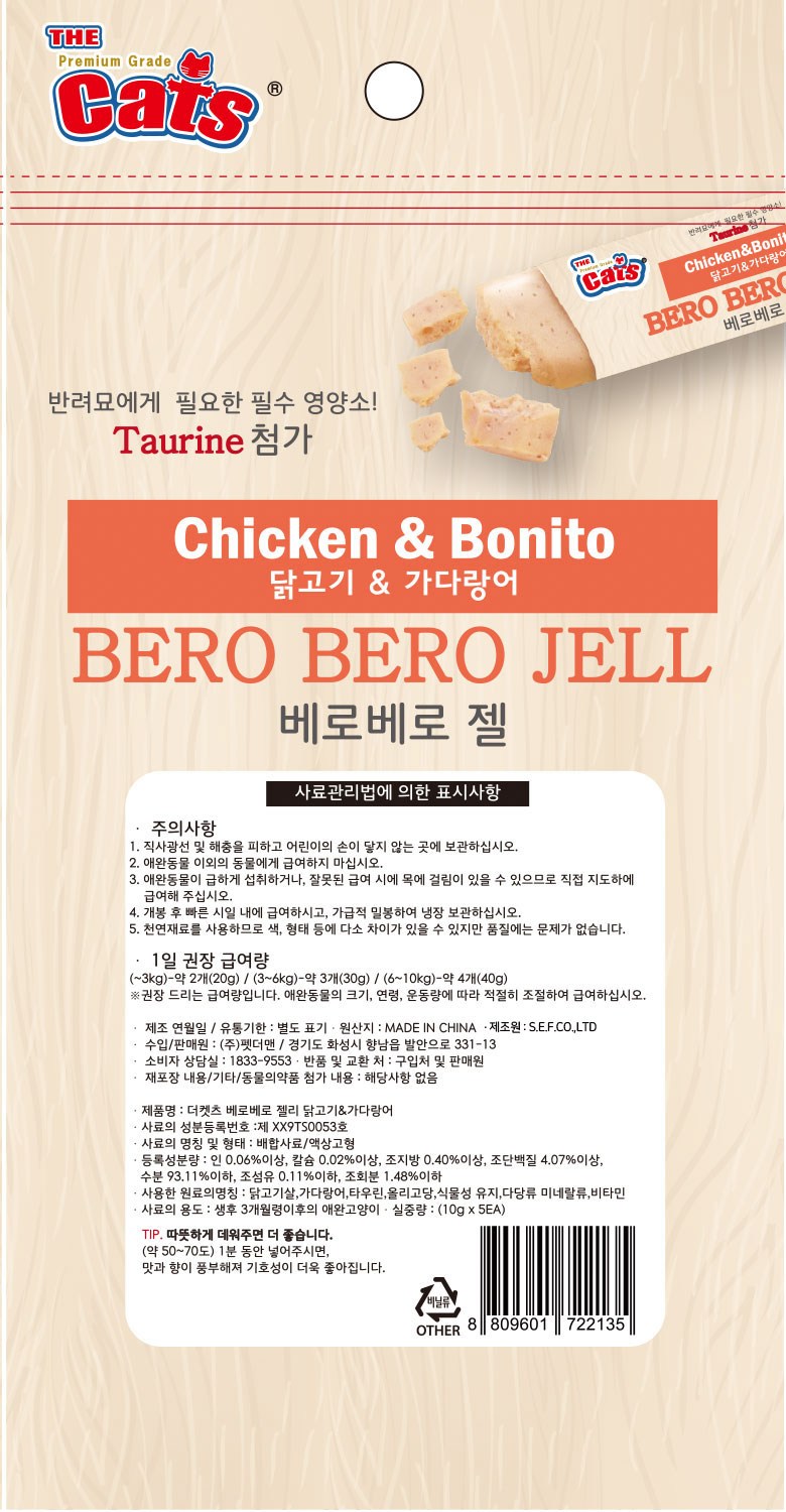 | 품명 및 모델명 | 더켓츠 베로베로 젤리 닭고기&.가다랑어 | 인증/허가 사항 | 사료관리법에 따른 성분등록번호 : 컨텐츠 참조 |