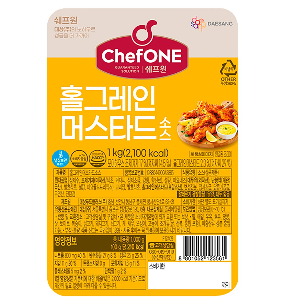 톡톡 튀는 식감이 매력적인 홀그레인 머스타드 소스예요. 새콤한 풍미 사이로 알싸한 맛을 즐길 수 있어요. 치킨, 소시지 등을 콕 찍어 드셔도 좋고, 샌드위치 소스로도 좋아요. 다양하게 활용해 식탁 위를 채워보세요