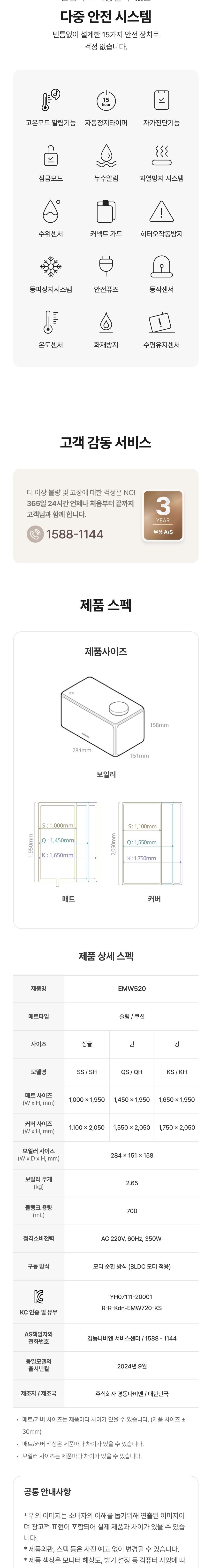 | 품명 및 모델명 | 경동 나비엔 온수매트 온열매트 / EMW520-QH | KC 인증정보 | YH07111-20001I / R-R-kdn-EMW720-KS |