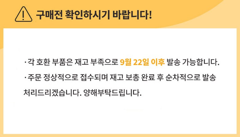 - ㆍ제조사의 사정 (신모델 출시 등) 및 부품 가격 변동 등에 의해 무료 교환/반품으로 요청하는 경우