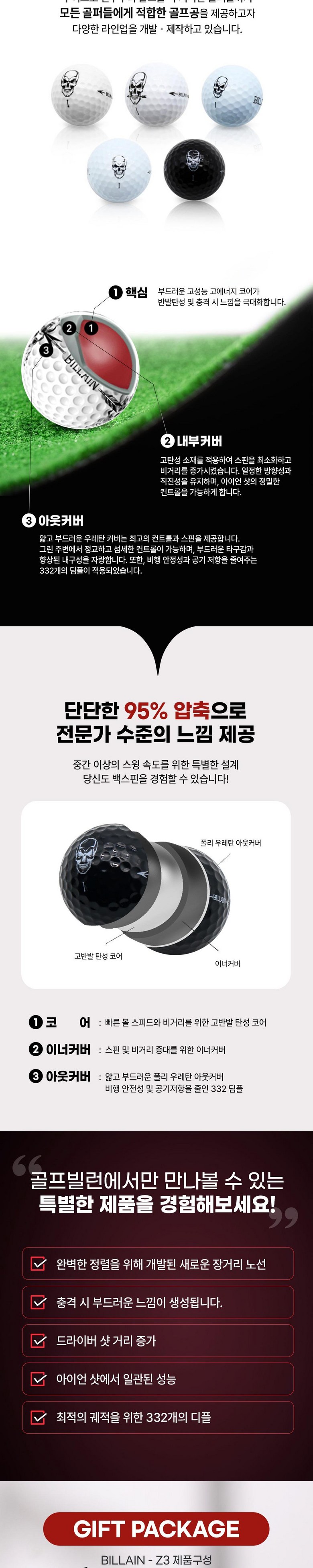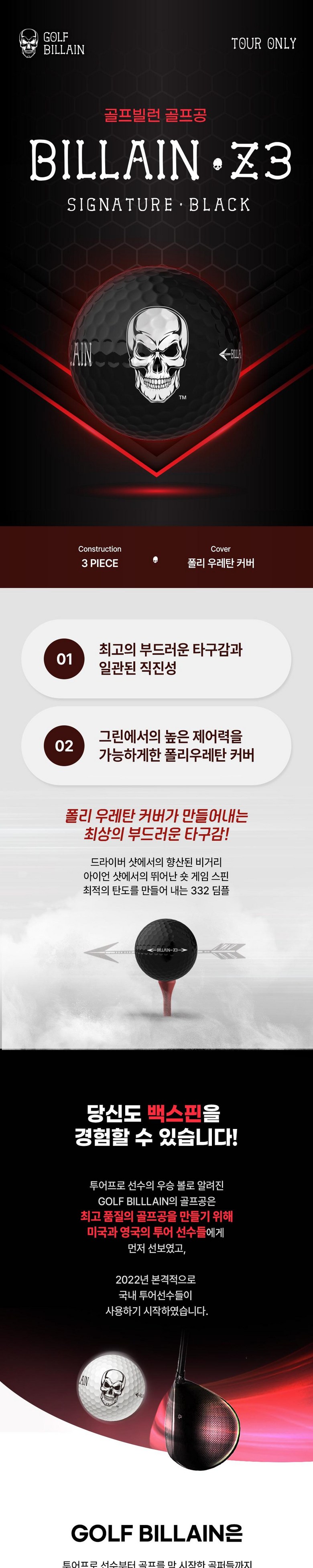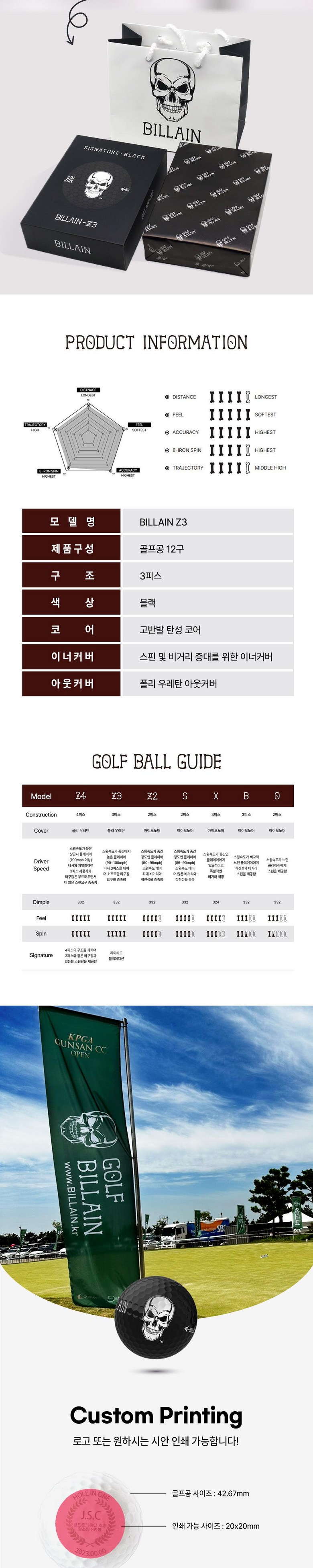 [Ver.26] 고탄력골프공 BILLAIN-Z3 BLACK 빌런-Z3 검정색 시그니처 블랙 3피스 우레탄 12구 세트