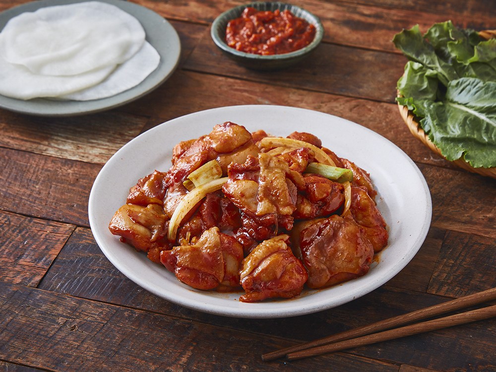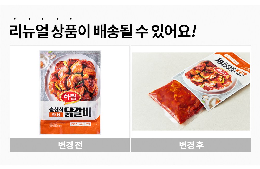 볶기만 하면 완성되는 닭갈비예요. 부드러운 닭고기에 맛깔난 소스가 쏙쏙 스며들었는데요. 한입 먹으면 매콤하고 달콤한 풍미를 즐길 수 있습니다. 춘천식 특유의 철판에 볶아낸 듯한 은은한 불향과 진한 감칠맛이 살아 있어, 그대로 먹어도 맛있고, 싱그러운 쌈 채소를 곁들여도 훌륭해요.