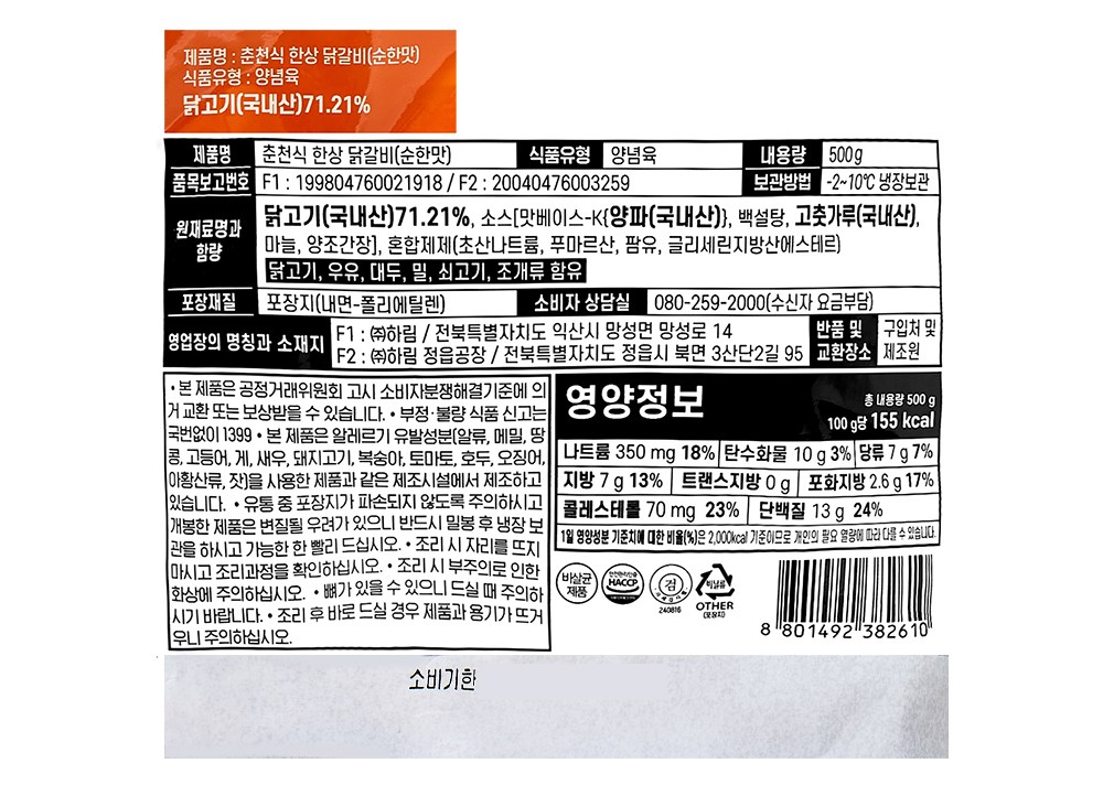 | 생산자 및 소재지 | 컨텐츠 참조 | 제조연월일, 소비기한 또는 품질유지기한 | 소비기한(또는 유통기한) : 2026년 02월 13일 이거나 그 이후인 상품 제조년월일 : 2026년 02월 05일 이후인 제조상품 |