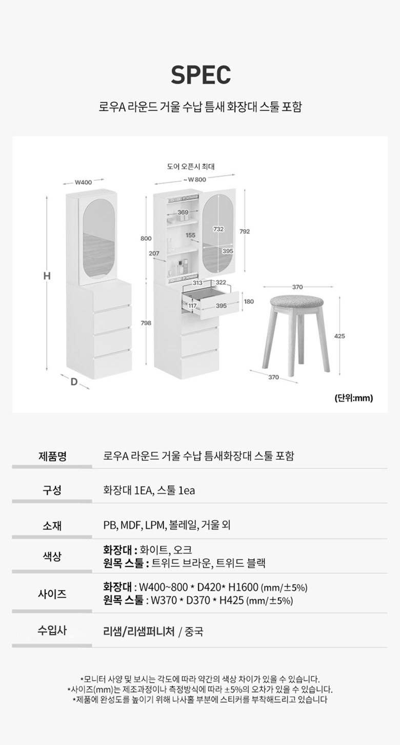 | 품명 | 파로마 로우A 라운드 거울 수납 틈새화장대 스툴포함_상부장_오크_방문설치 | KC 인증정보 | 해당없음 |
