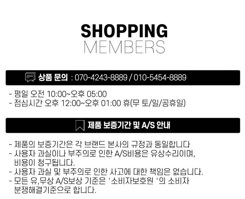- ㆍ모니터 해상도의 차이로 인해 색상이나 이미지가 실제와 달라, 고객이 단순 변심으로 교환/반품을 무료로 요청하는 경우
