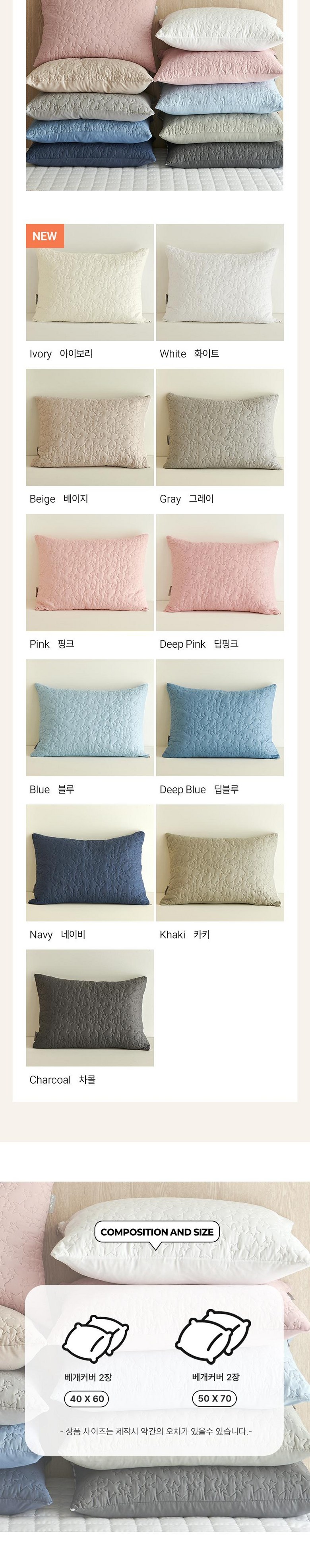 | 치수 | 40x60cm / 50x70cm | 제품구성 | 베개커버 2장 |