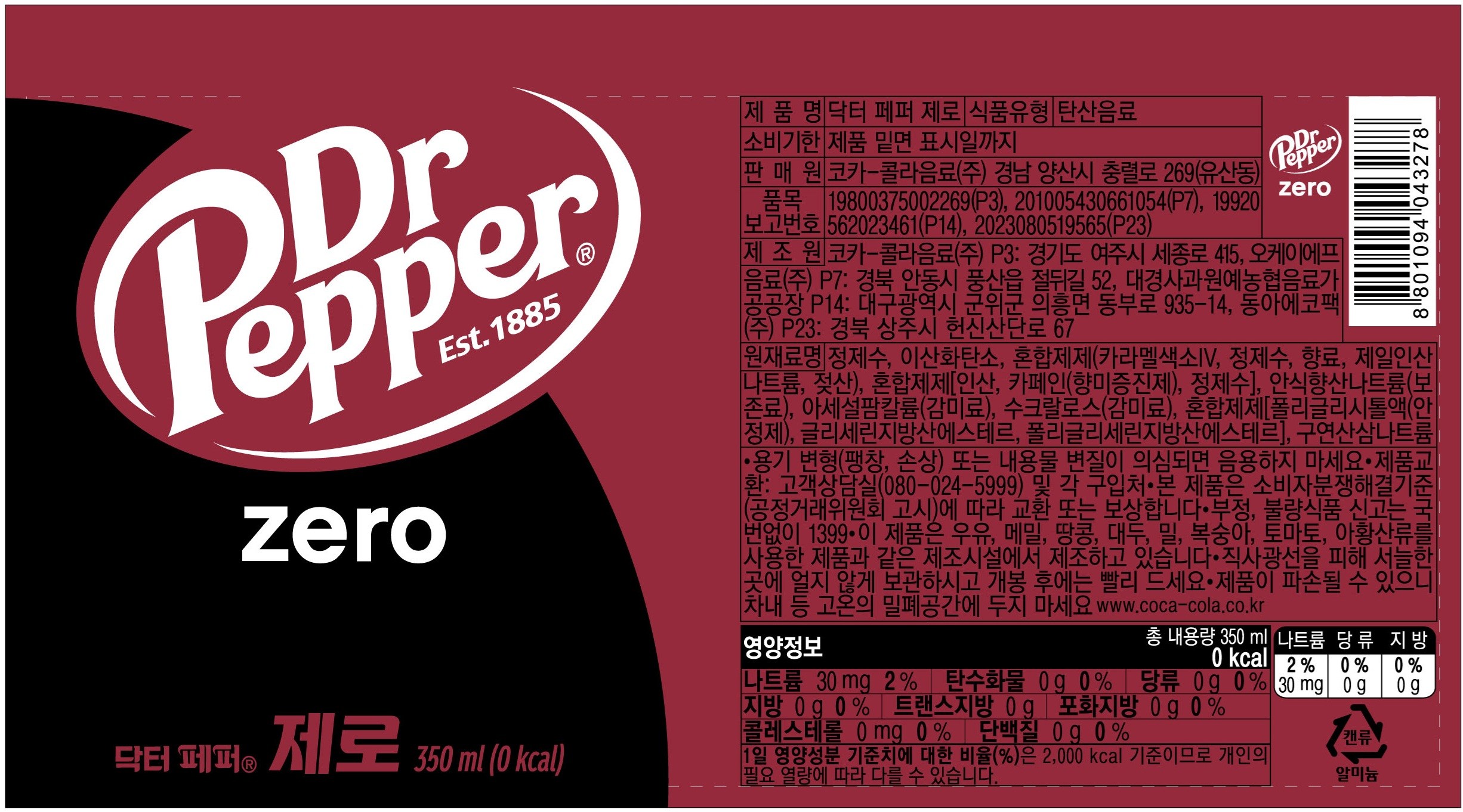 - 탄산음료 종류: 제로