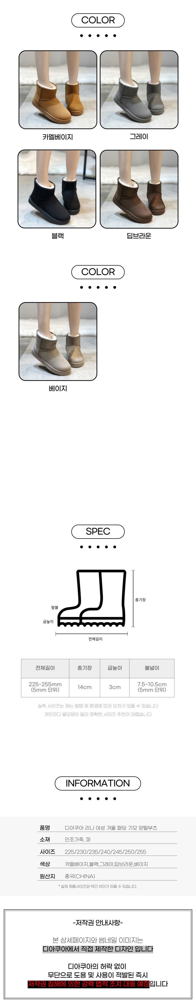 | 제조국 | 상품 상세페이지 참조 | 취급시 주의사항 | 상품 상세페이지 참조 |