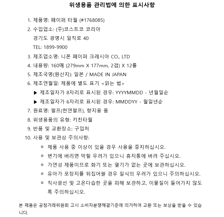 다만, 판매자의 제시사항이 관계법령보다 소비자에게 유리한 경우에는 판매자 제시사항이 적용됩니다.
