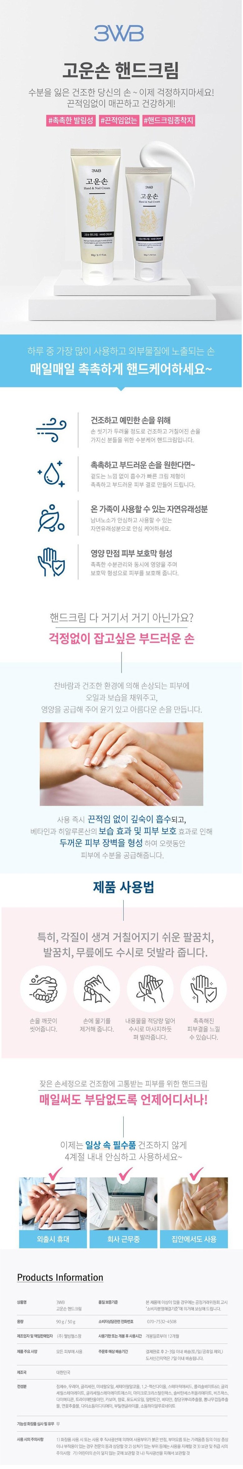 웰빙헬스 고운손크림 90g 3개 고운손 핸드크림