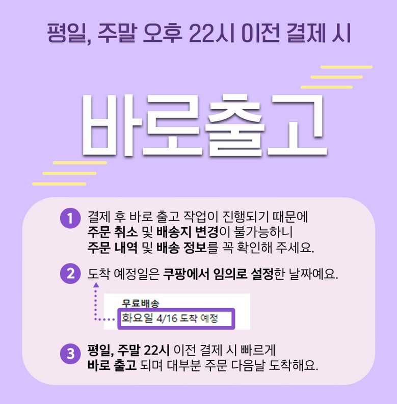 | 배송기간 | ㆍ도서산간 지역 등은 배송에 3-5일이 더 소요될 수 있습니다. - 천재지변, 물량 수급 변동 등 예외적인 사유 발생 시, 다소 지연될 수 있는 점 양해 부탁드립니다. | ||