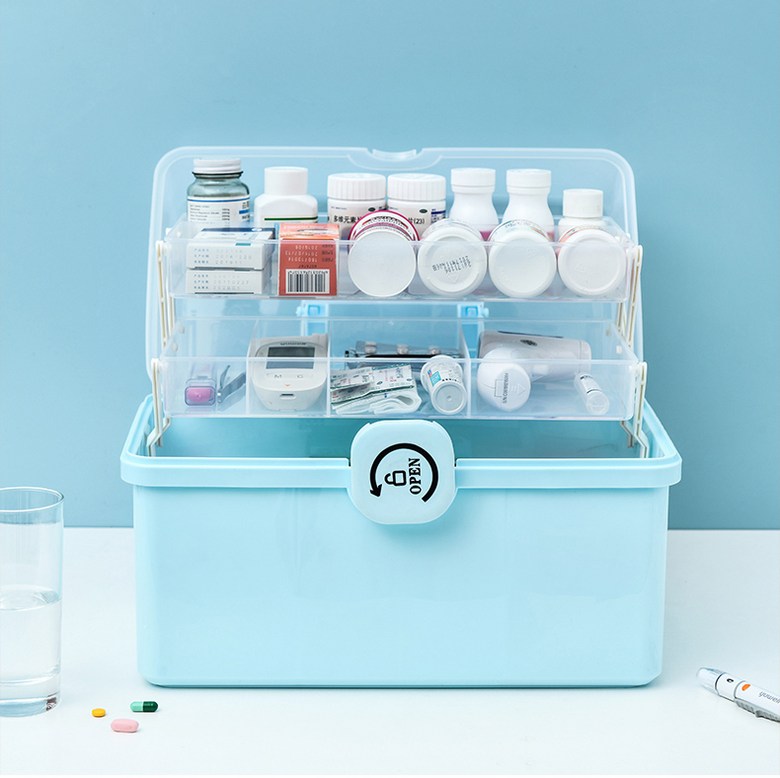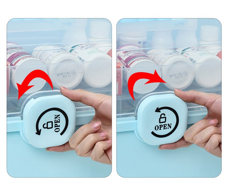 연결 스트립, 칸막이, 약 상자 외부 잠금 장치, 약 상자 잠금 버클, 나사, 덮개, 손잡이