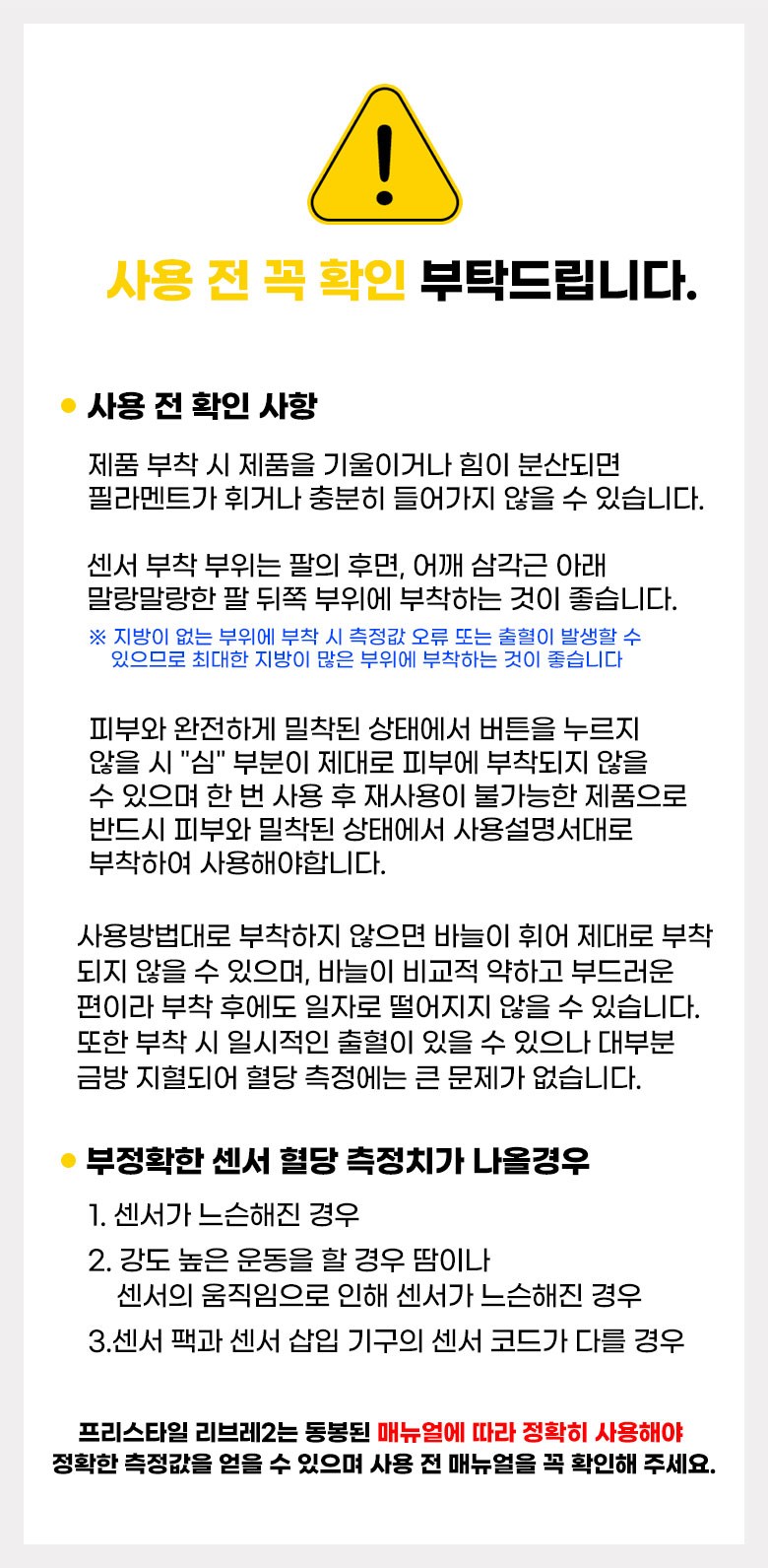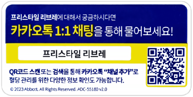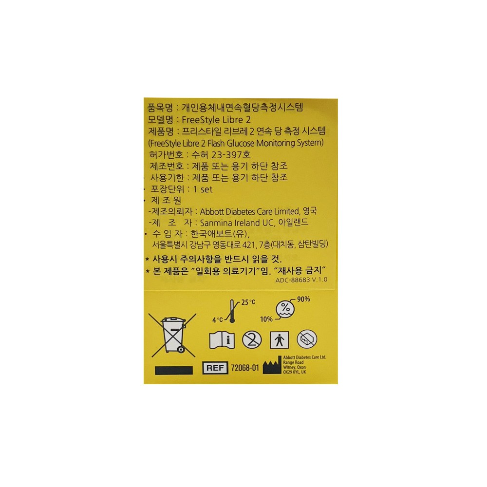 | 품명 및 모델명 | 개인용체내연속혈당측정시스템 / FreeStyle Libre 2 | 허가∙인증∙신고번호 (의료기기법에 따른 허가∙인증∙신고 대상 의료기기에 한함) | 품목허가번호: 수허 23-397 호 |
