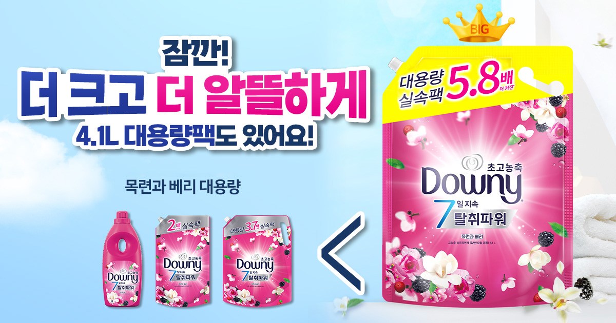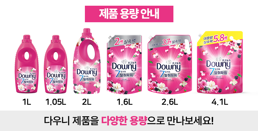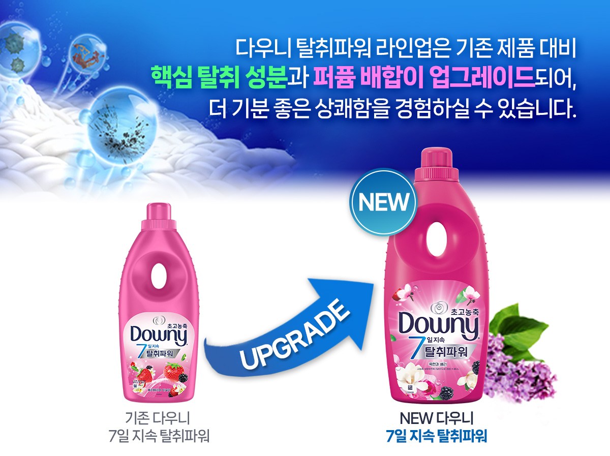 | 품목 및 제품명 | 섬유유연제, 탈취제 / 다우니 고농축 섬유유연제 (7 일 탈취파워 목련과 베리) | 용도(표백제의 경우 계열을 함께표시) 및 제형 | 섬유유연제(섬유용, 신발용), 탈취제[일반용(물체용)] / 액체형 |