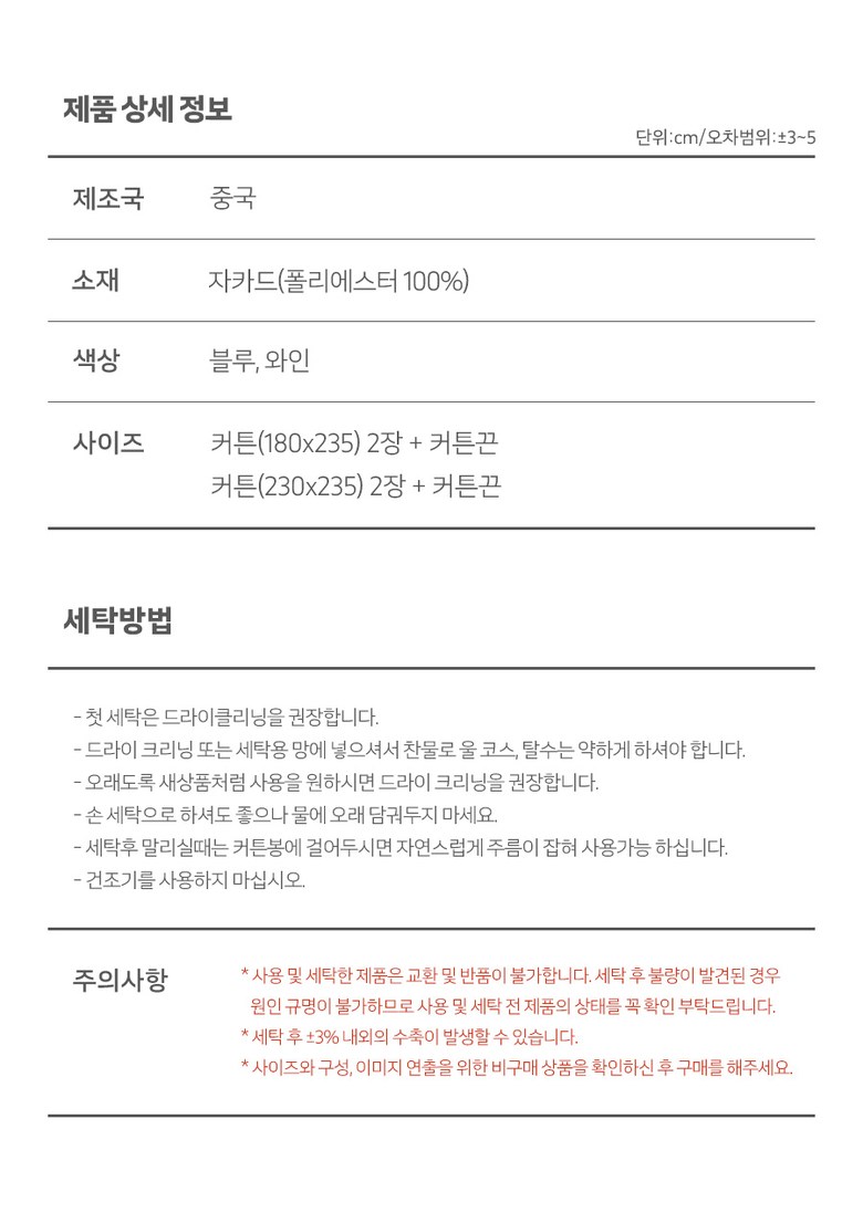 | 제품 소재 | 상품 상세페이지 참조 | 색상 | 상품 상세페이지 참조 |