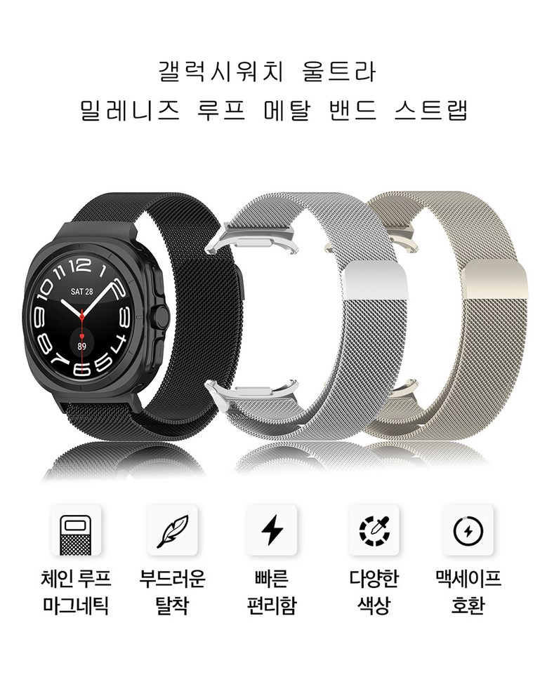 갤럭시워치 울트라 밀레니즈 루프 마그네틱 메탈 스트랩 밴드 시계줄